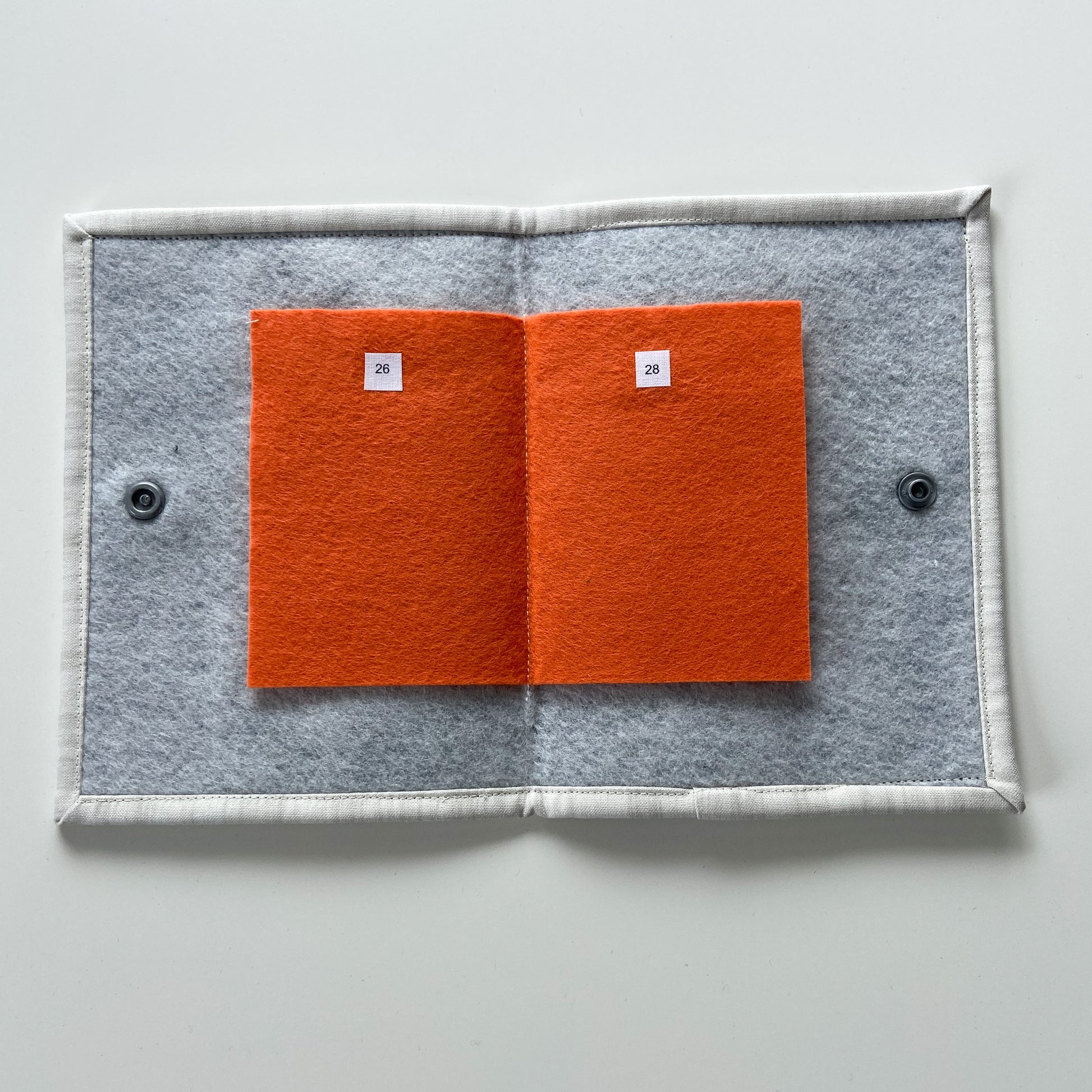Each needle holder are made with new denim and 100% cotton fabric. There is one layer of fusible interfacing to provide stability and to hold extra floss strands. Each felt piece is labeled with the various needle sizes we use (24/26/28/Misc) to keep you going on your many projects.