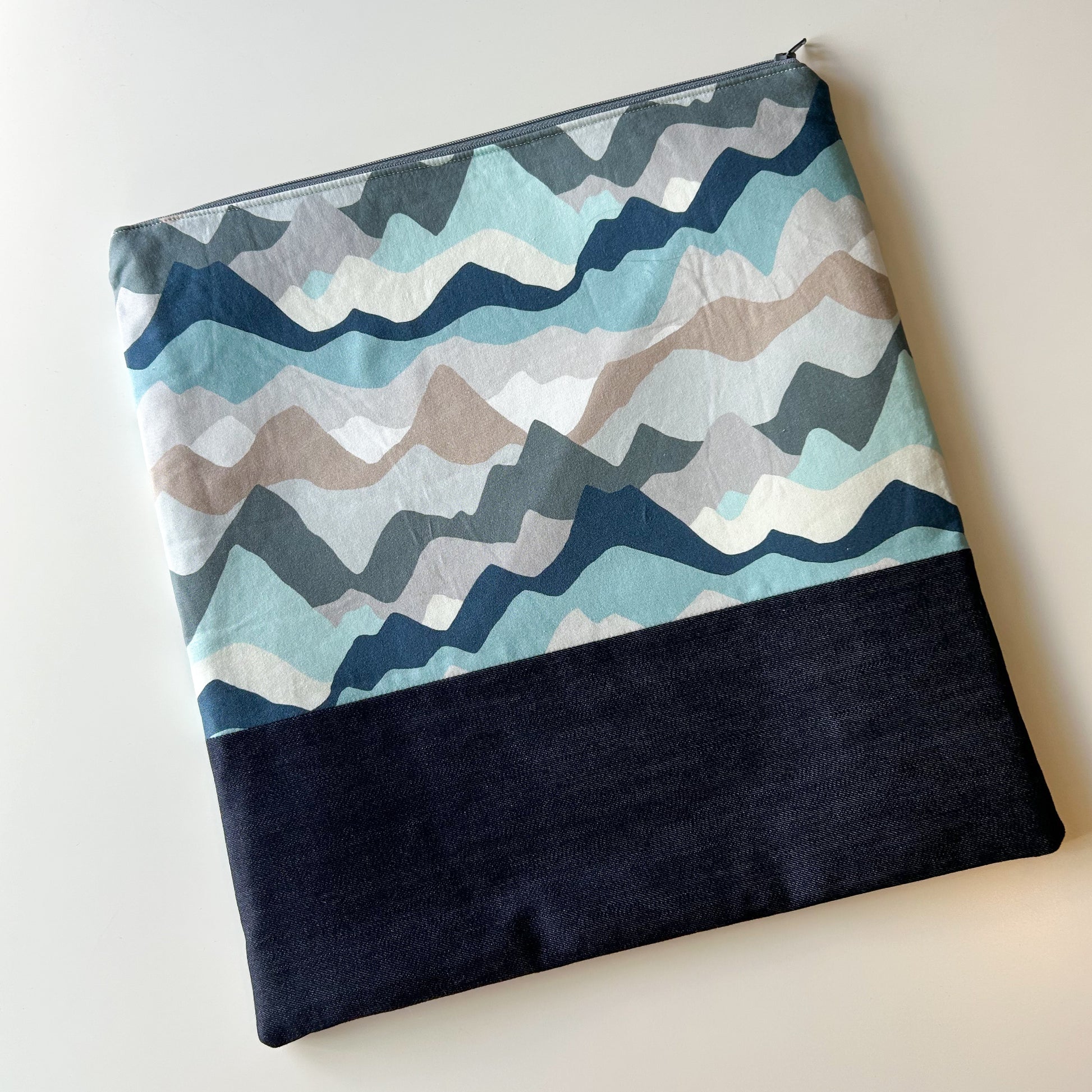 Cross Stitch Zippered Project Bag - Blue/Grey Mountain Peaks