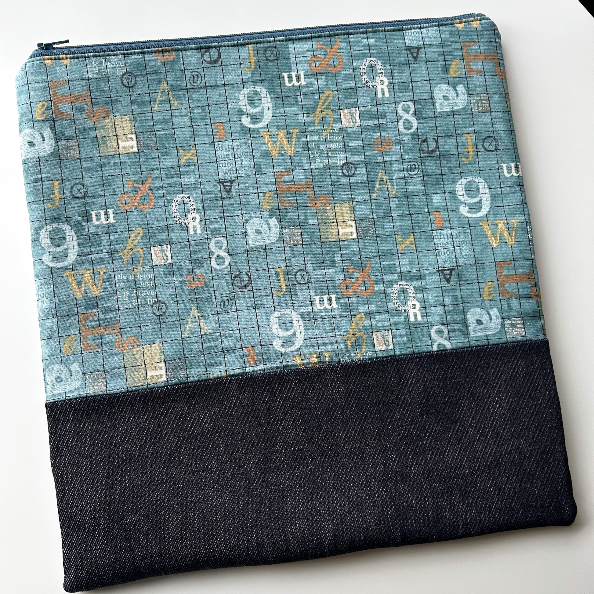 Cross Stitch Zippered Project Bag - Blue Letters & Numbers Typeface