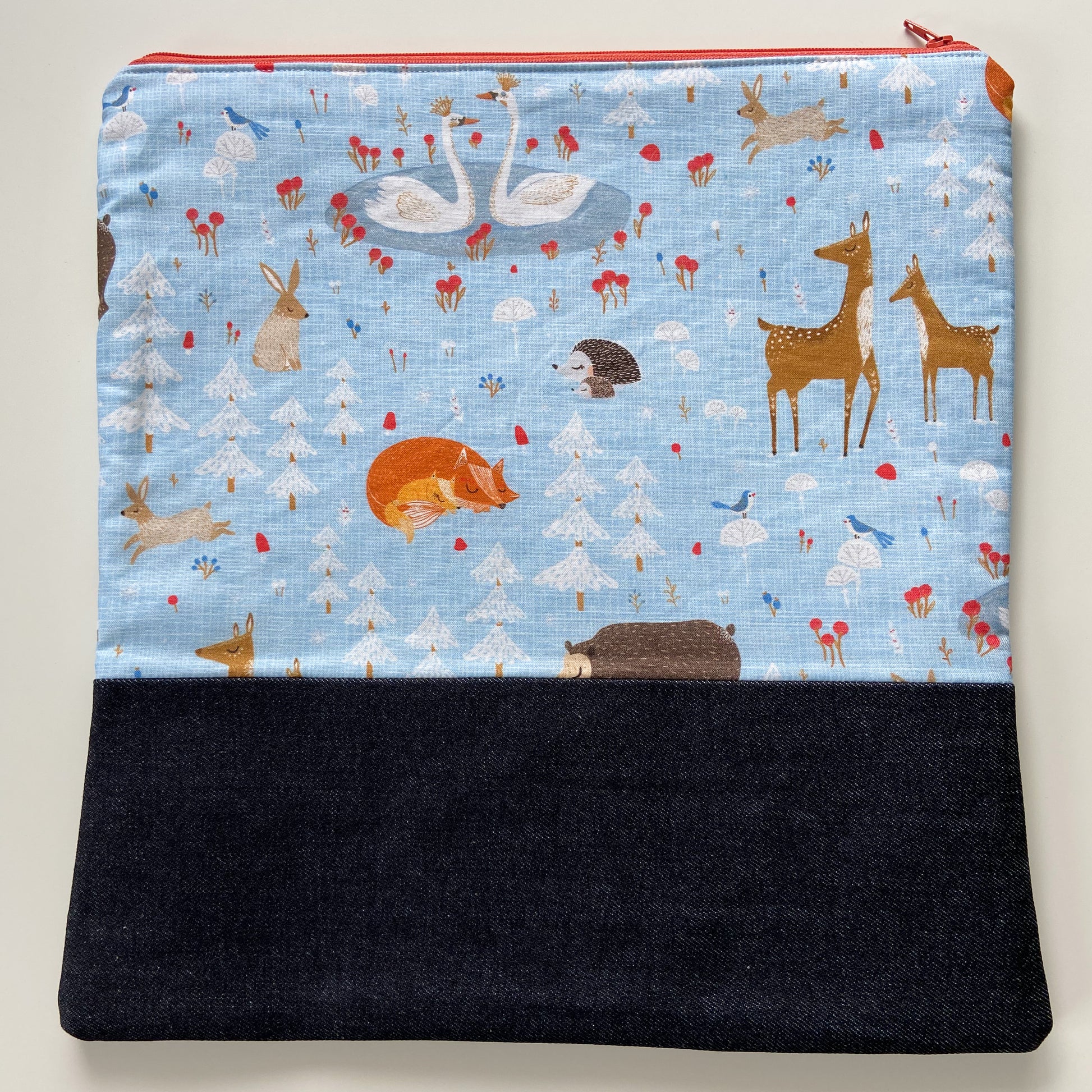 Cross Stitch Zippered Project Bag - Blue Woodland Animals