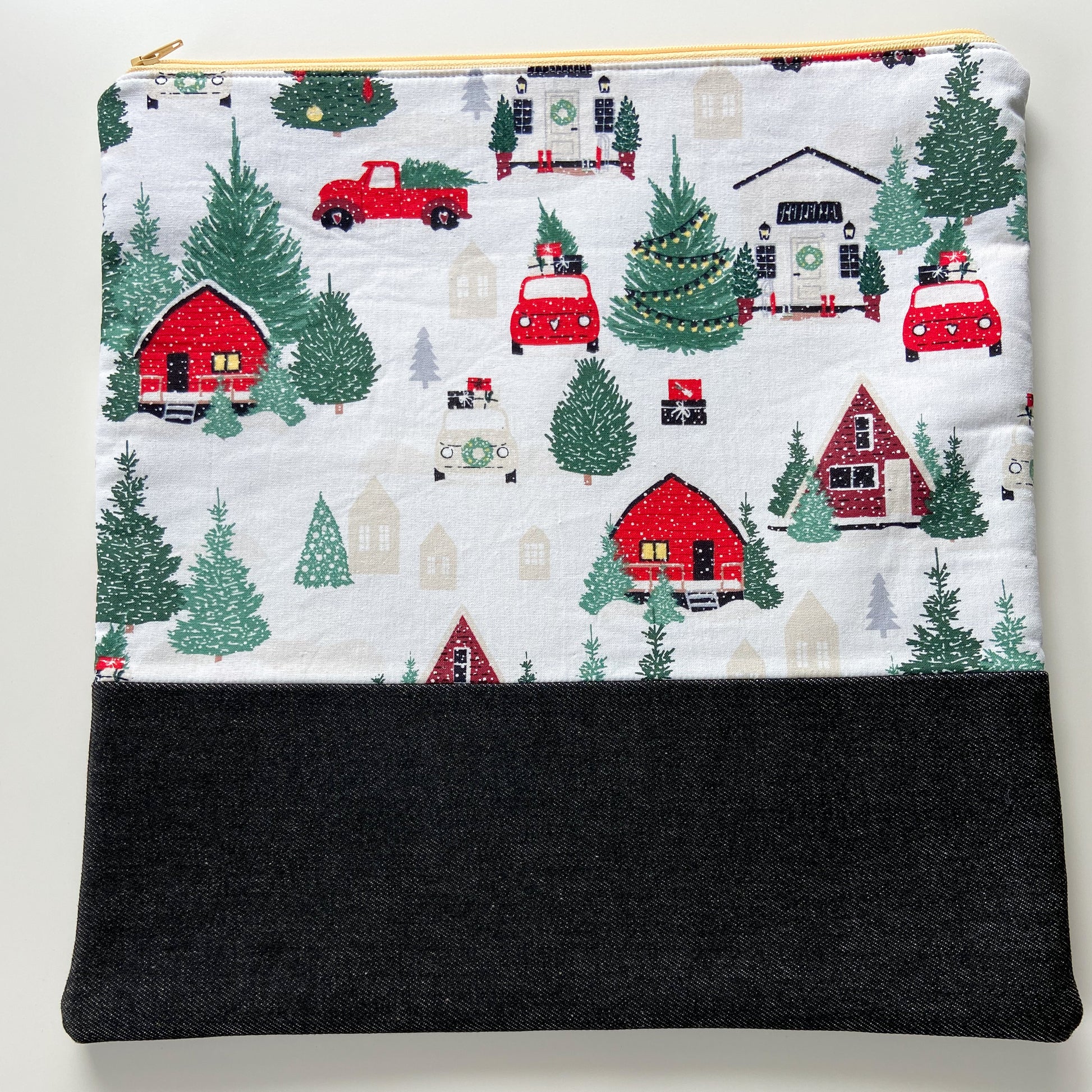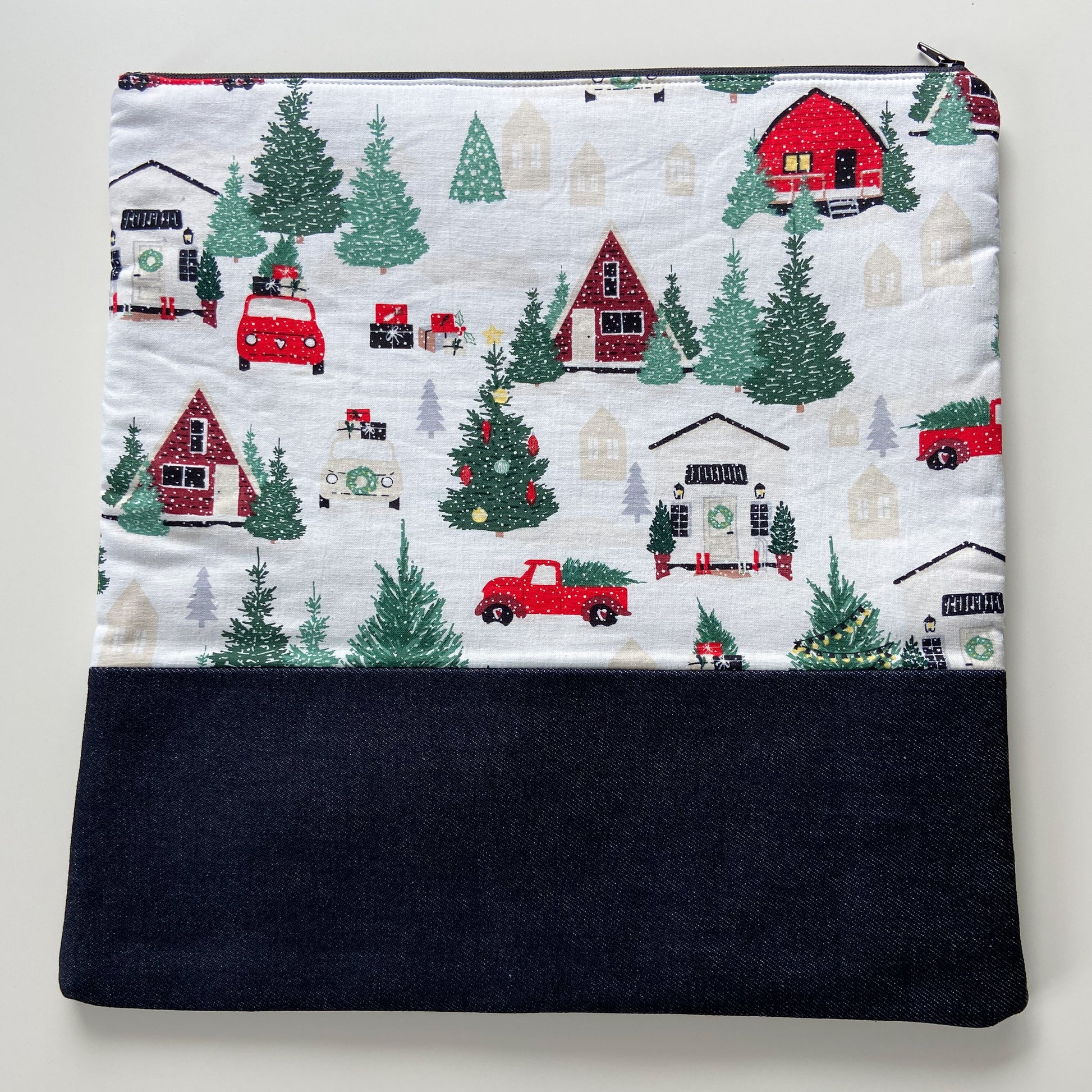 Cross Stitch Zippered Project Bag - Christmas Cottage