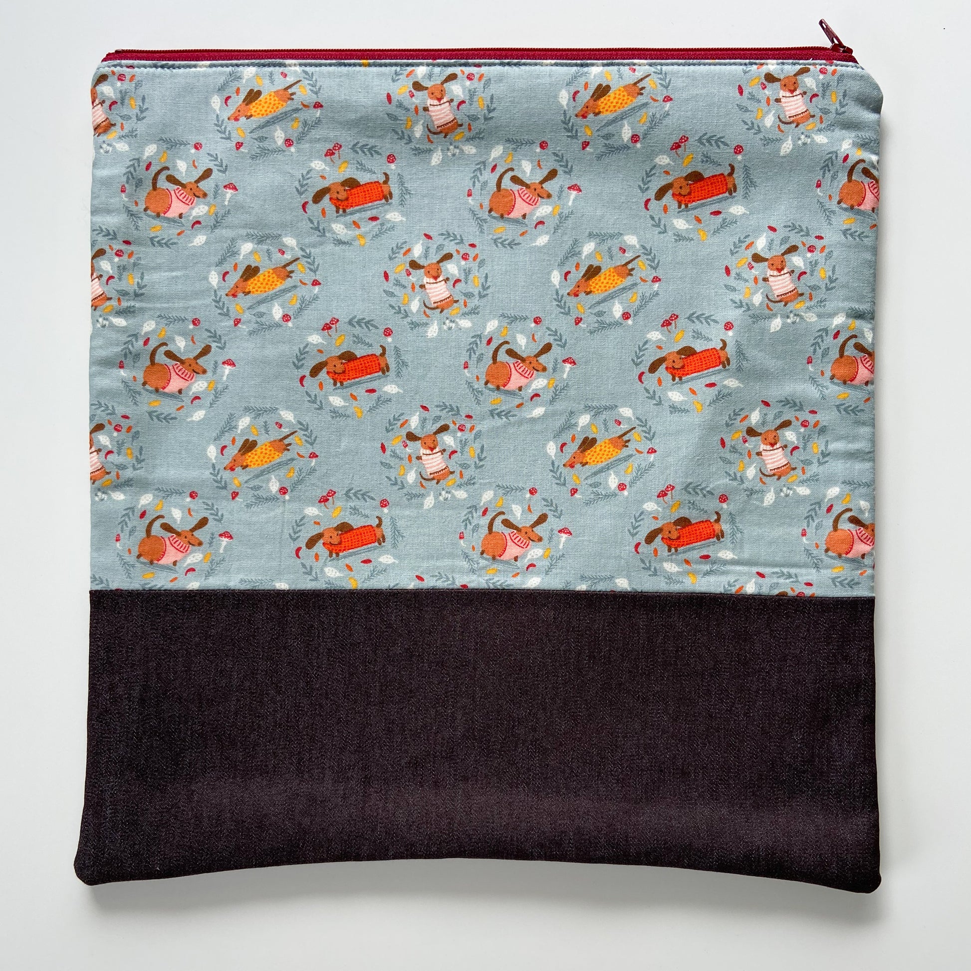 Cross Stitch Zippered Project Bag - Grey Sweater Pups