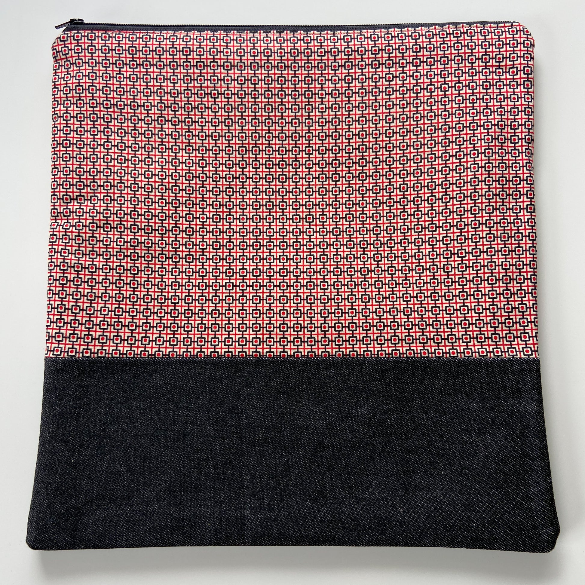 Cross Stitch Zippered Project Bag - Red/Black Geometric