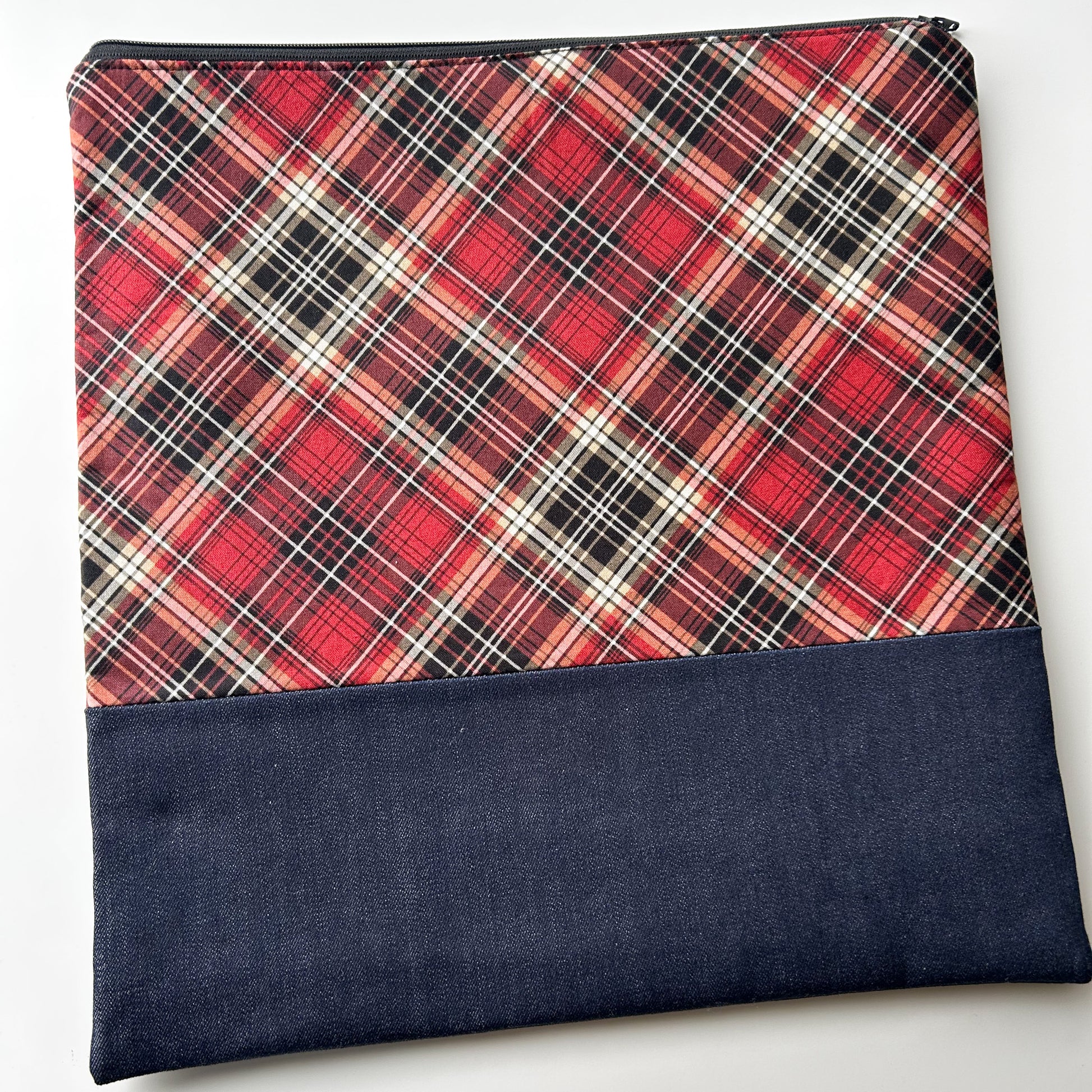 Cross Stitch Zippered Project Bag - Red Diagonal Plaid