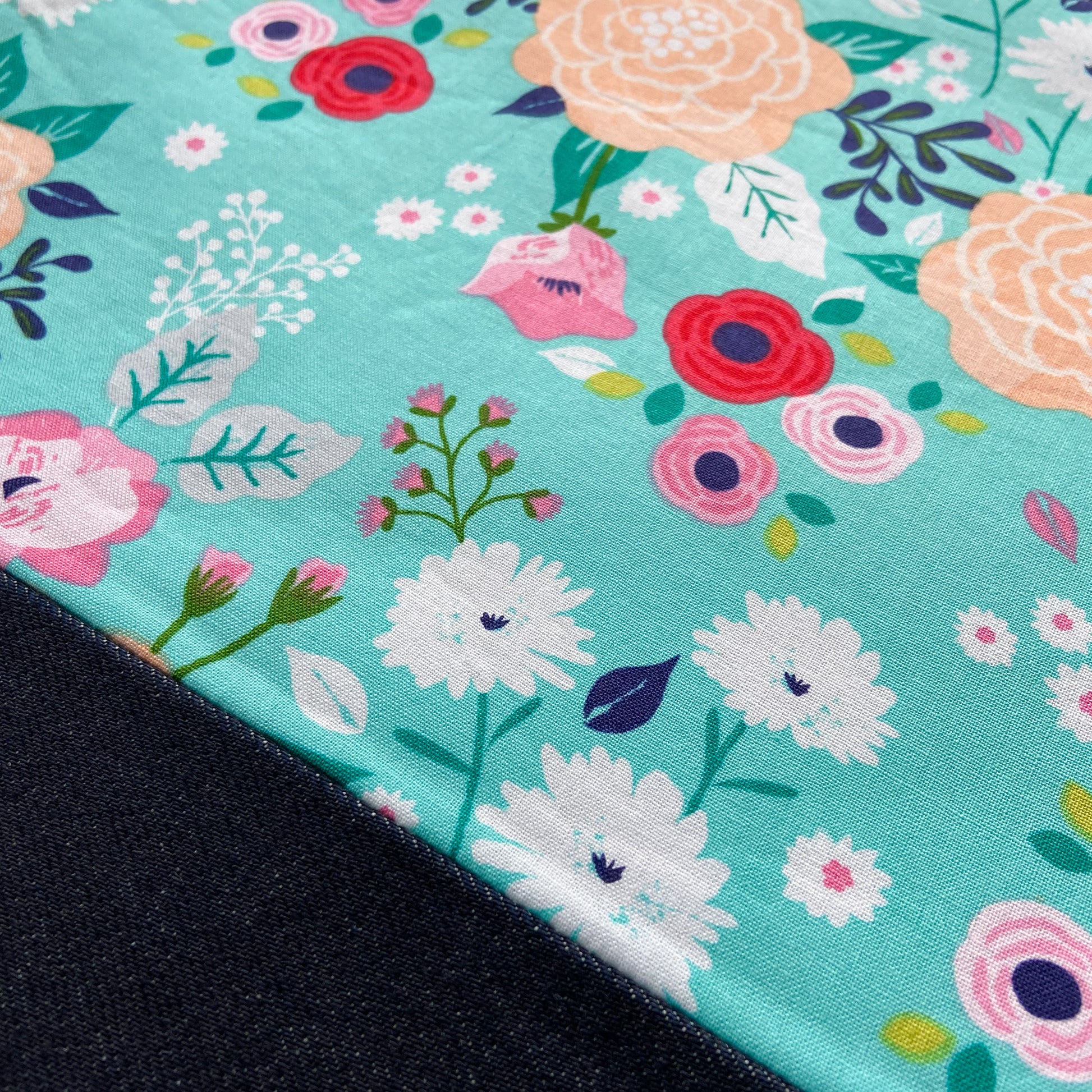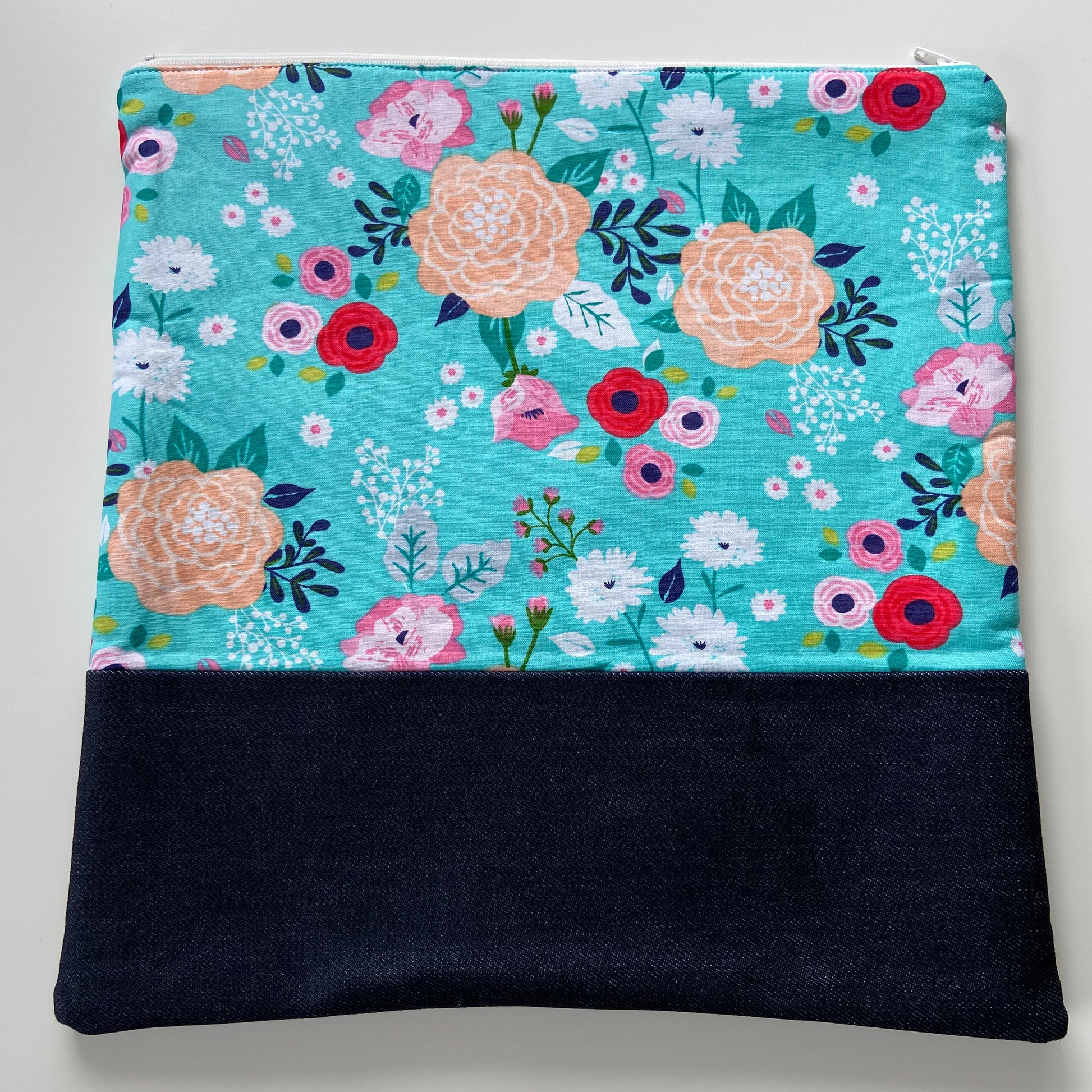 Cross Stitch Zippered Project Bag - Teal with Flowers