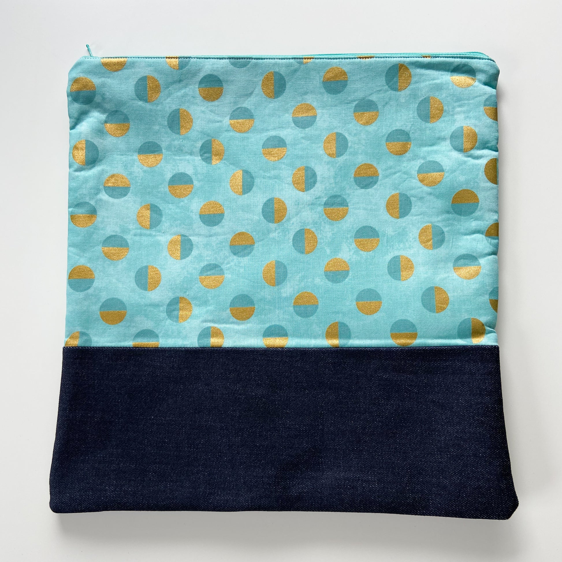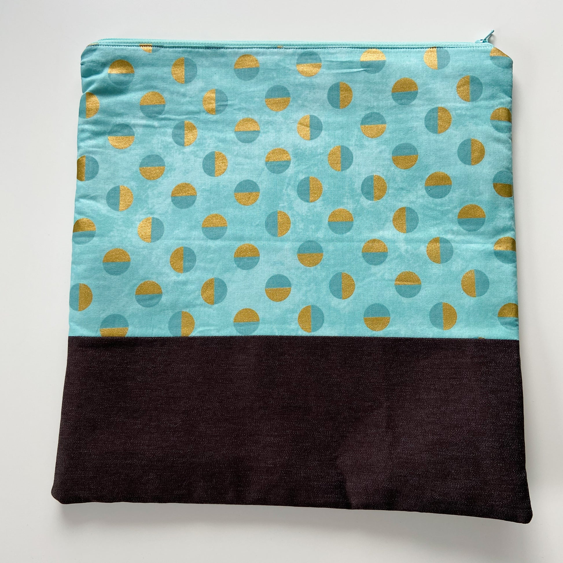 Cross Stitch Zippered Project Bag - Teal with Gold Circles