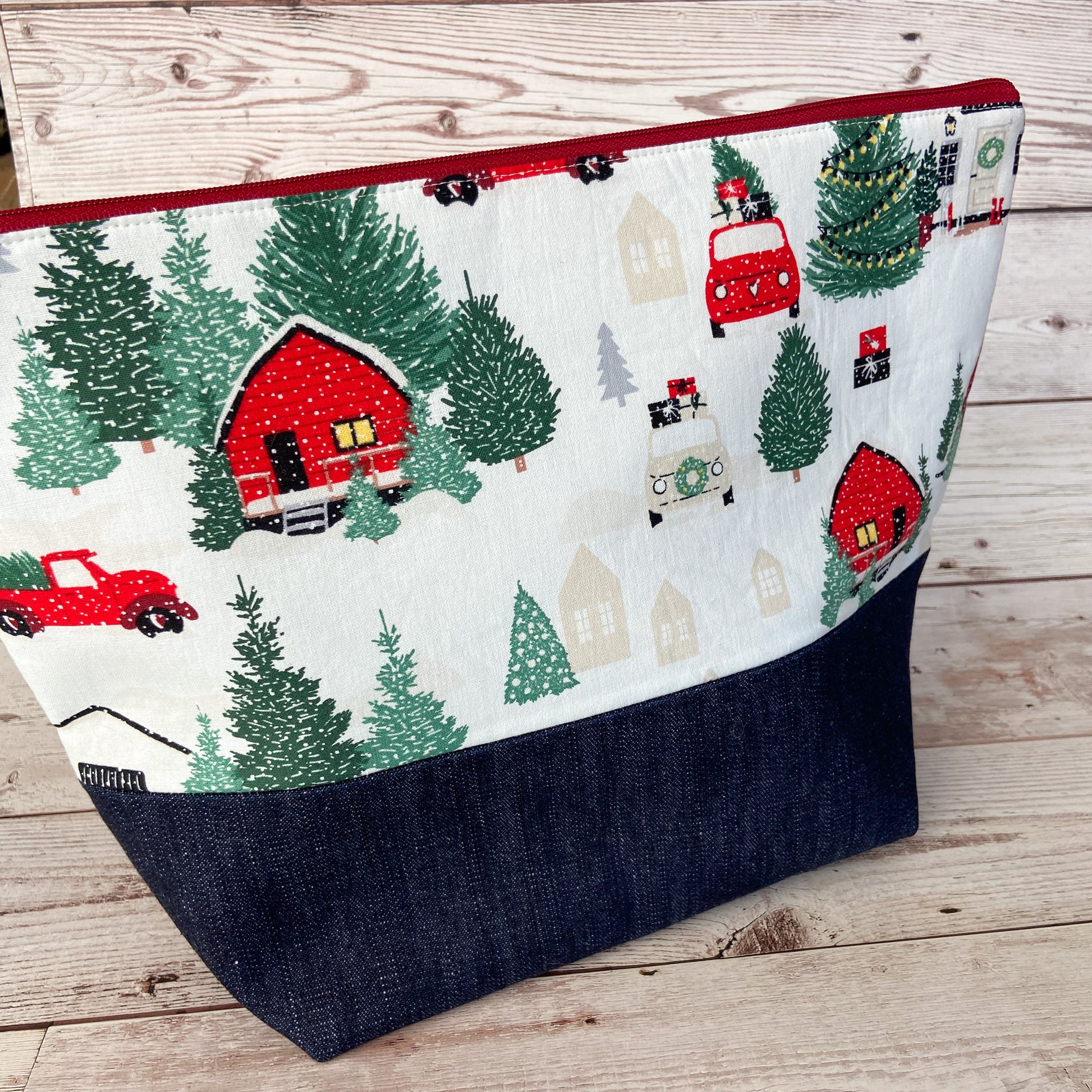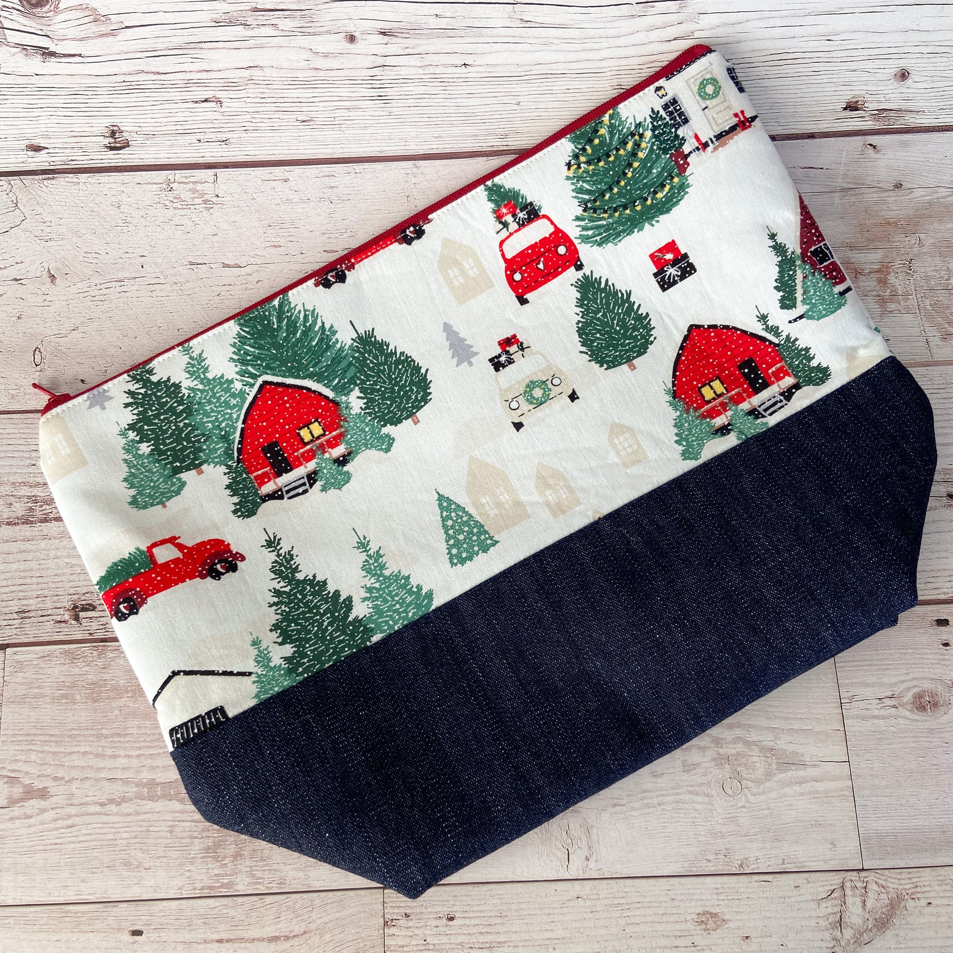 Denim - Large Zippered Project Bag - Going to the Cottage for Christmas