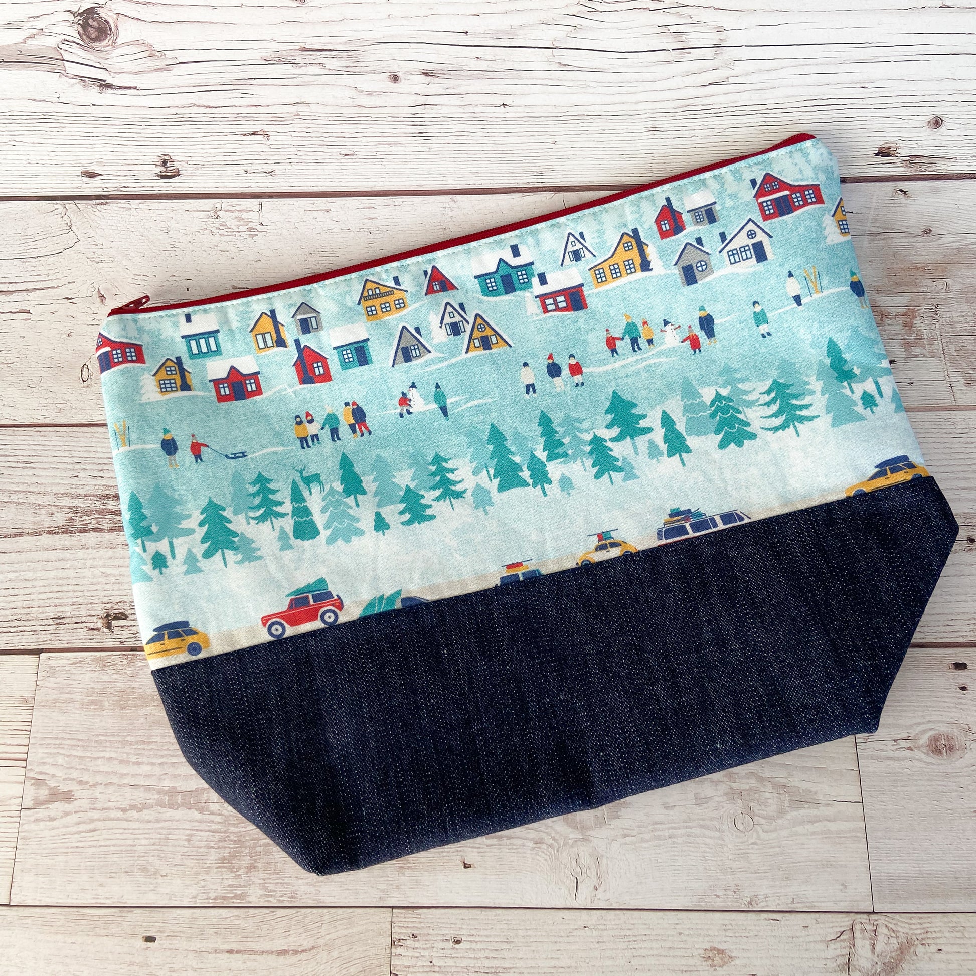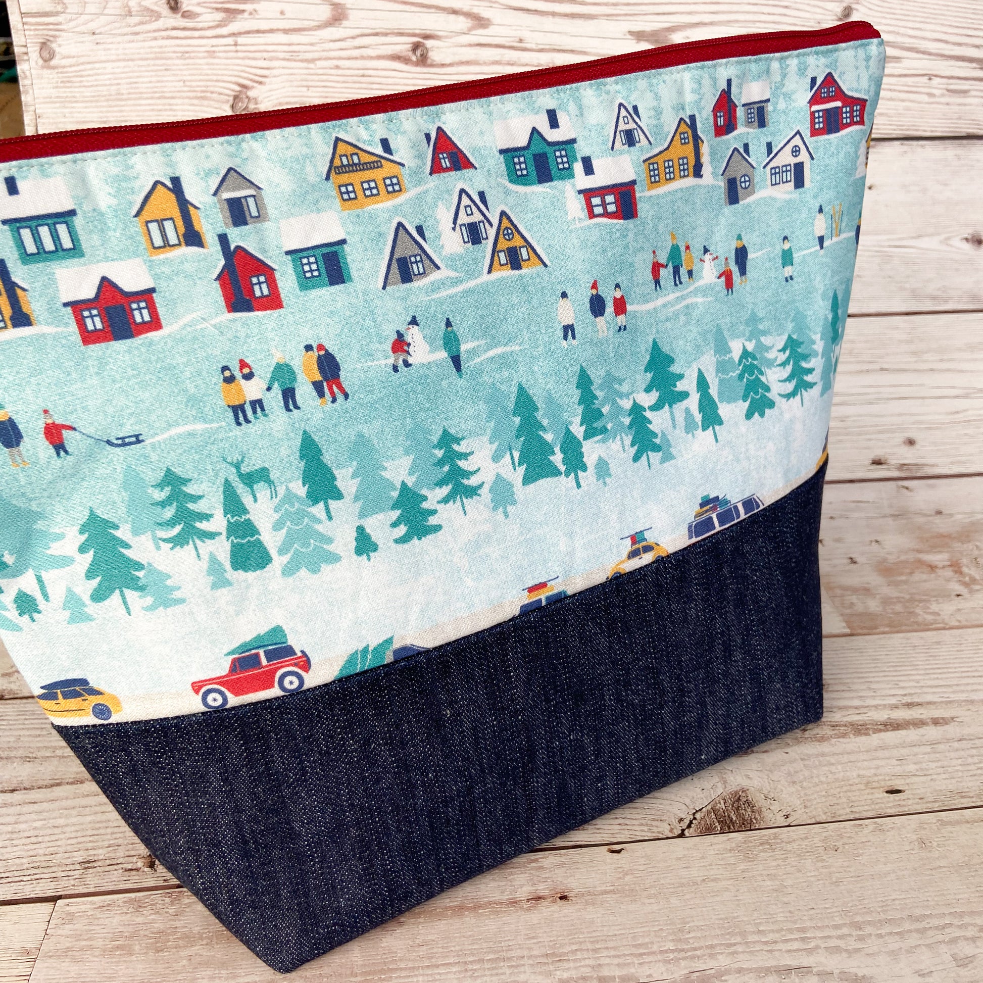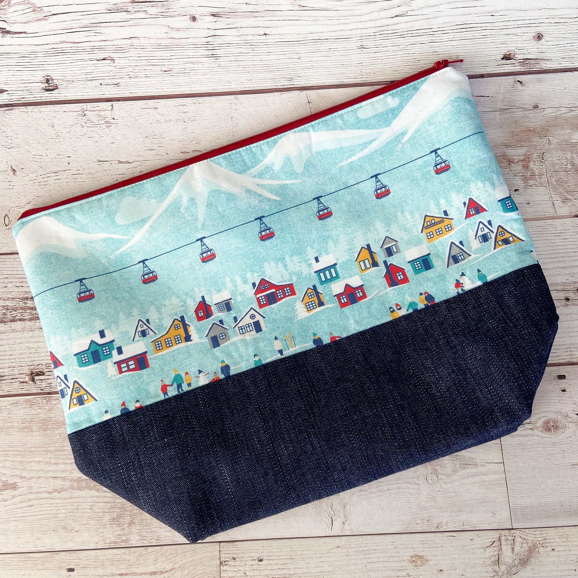 Denim - Large Zippered Project Bag - Swiss Alpine Scene