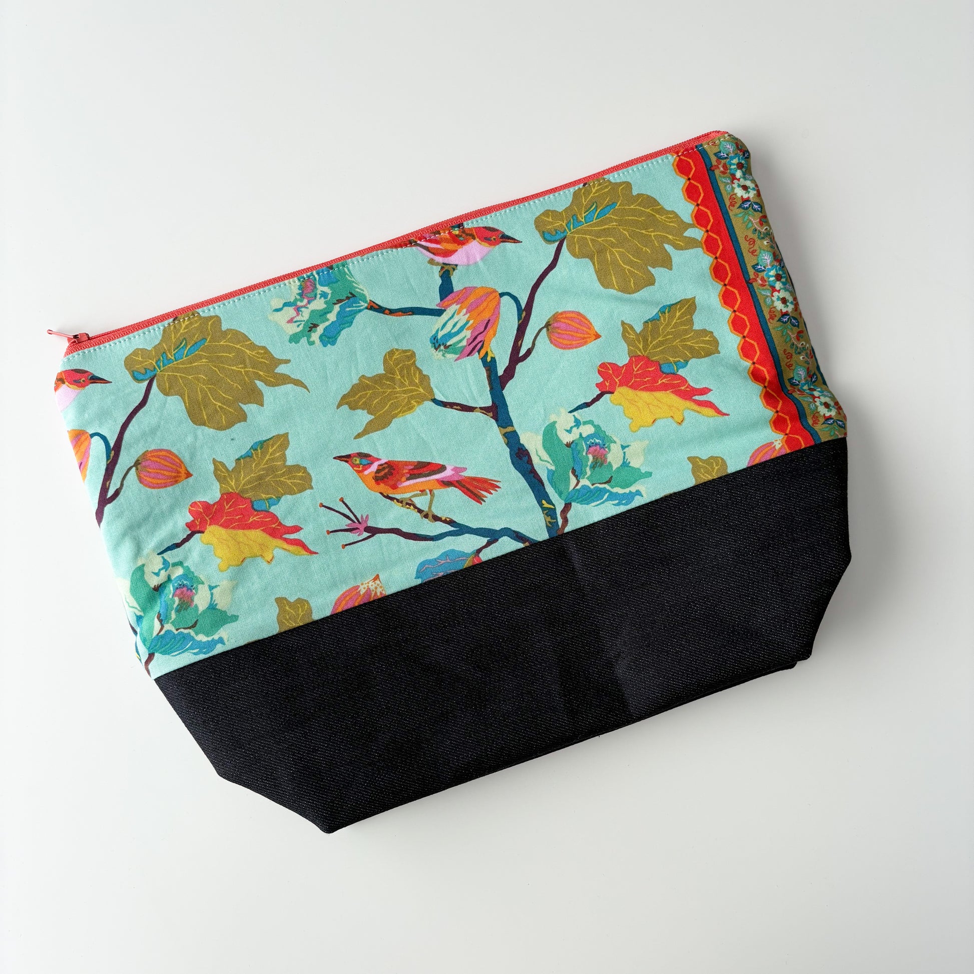 Denim - Shawl Zippered Project Bag - Birds on Branches w/ Teal