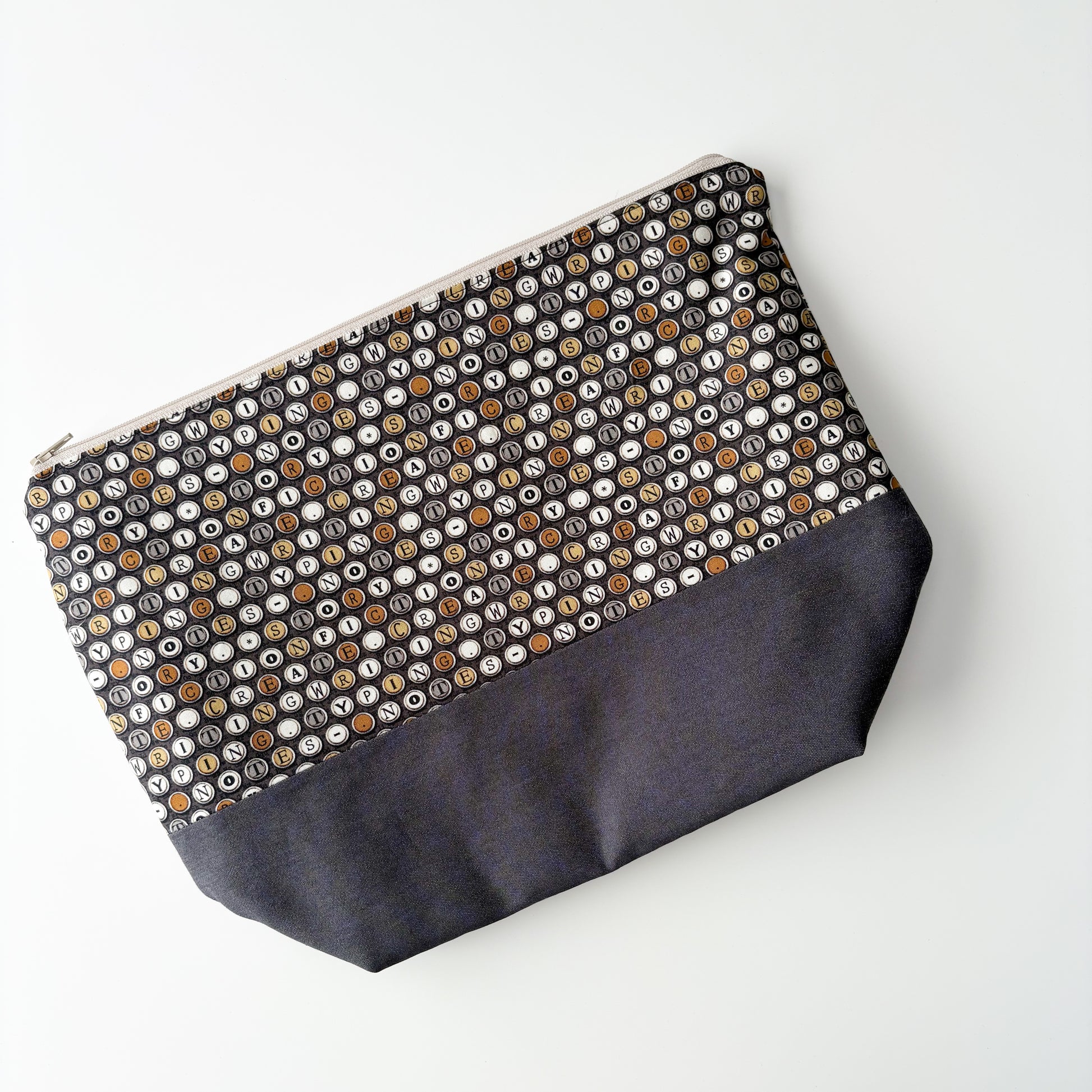 Denim - Shawl Zippered Project Bag - Typewriter Buttons
