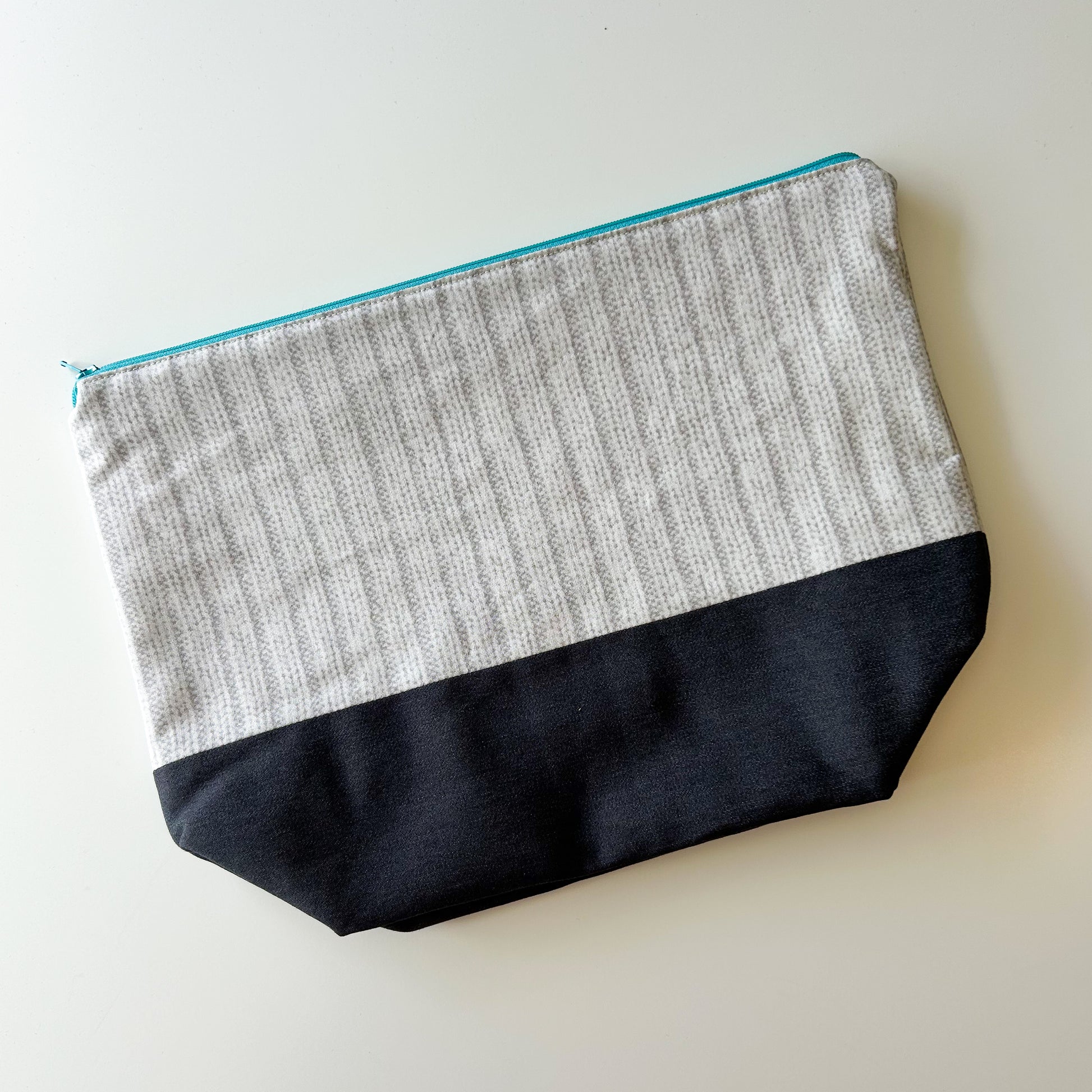 Denim - Shawl Zippered Project Bag - White/Grey Ribbed Stitch