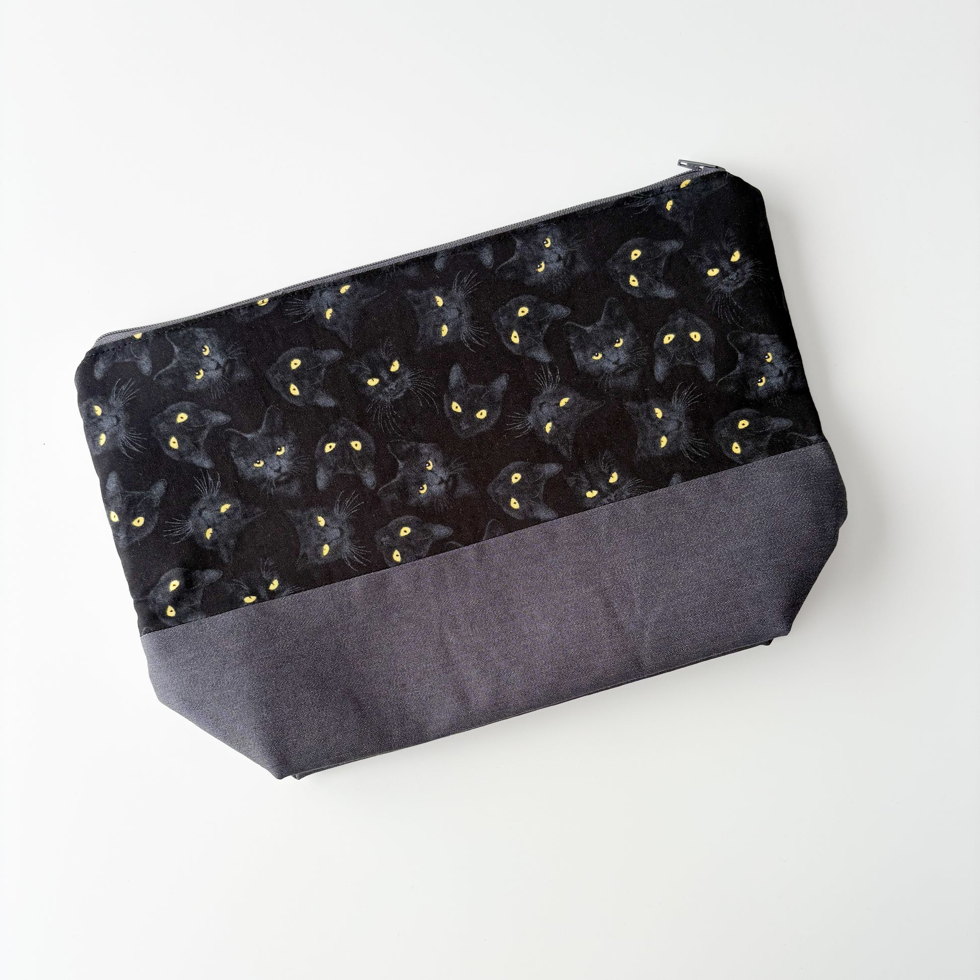 Small zippered project bag perfect for socks, hats or mitten and shawl projects. This bag is made with 100% quilters cotton and denim fabric.