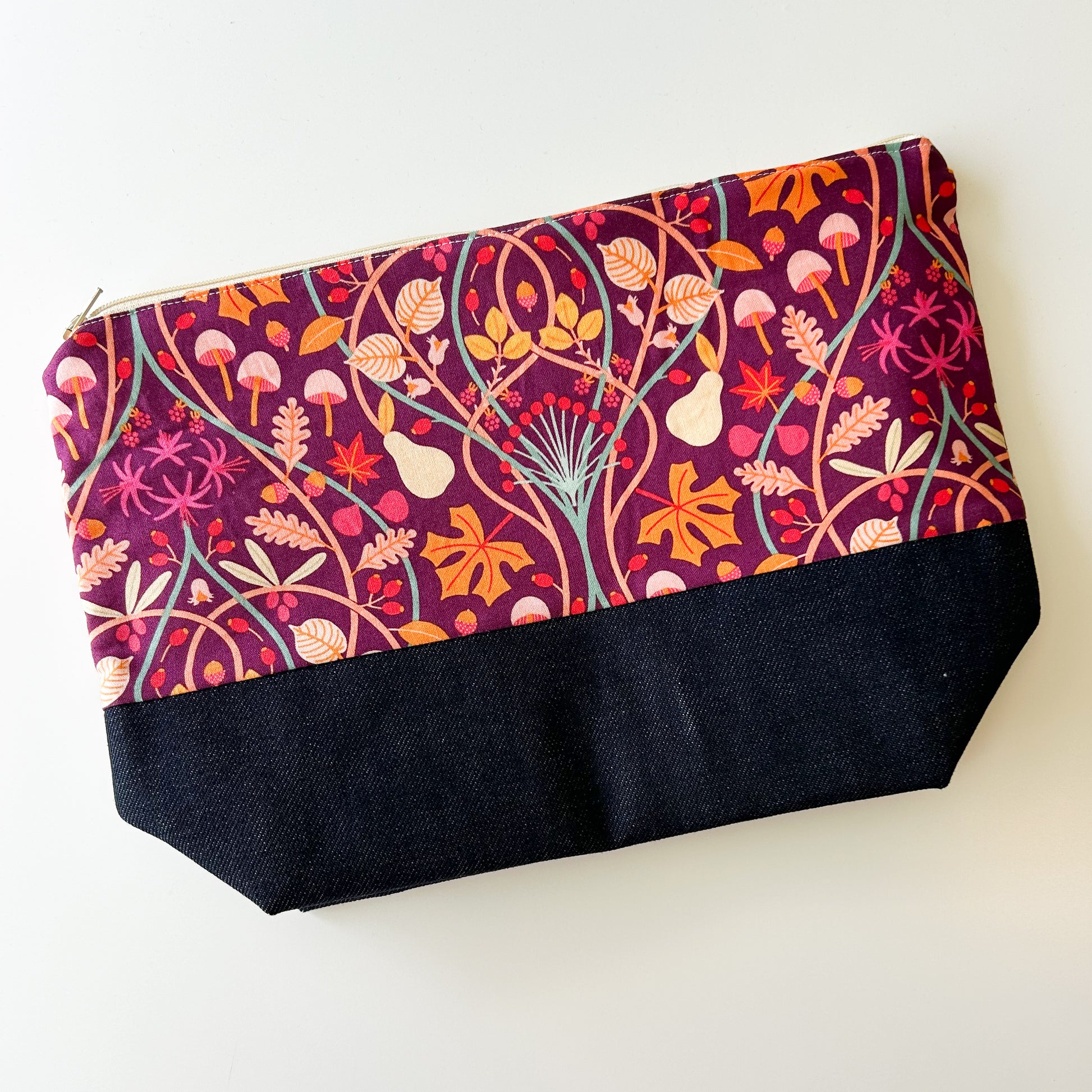 Denim - Small Zippered Project Bag - Forest Flora