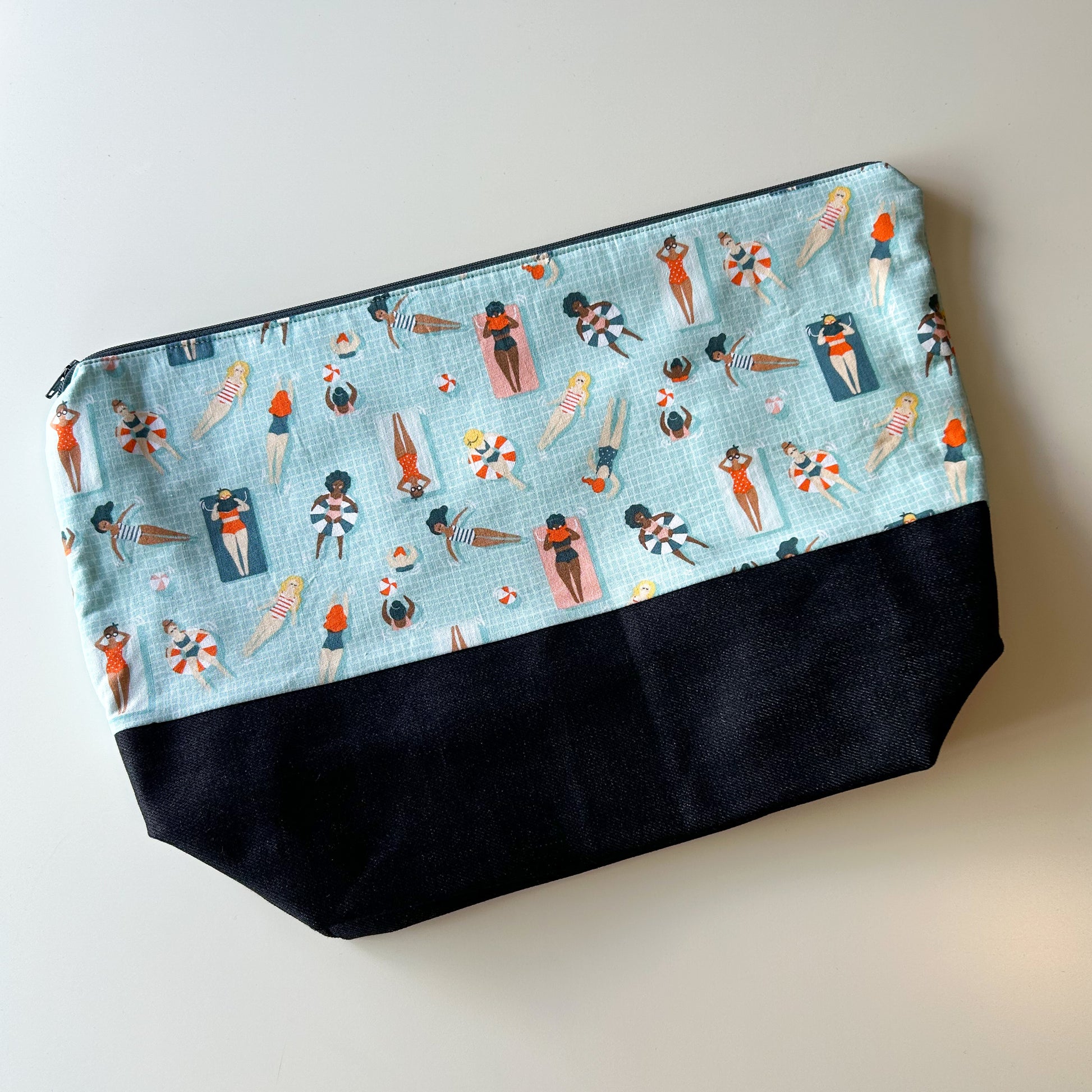 Denim - Sweater Zippered Project Bag - Blue Lounging Poolside