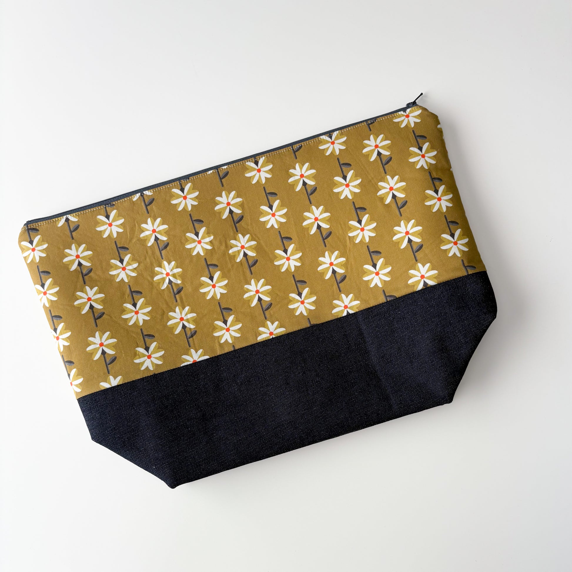 Denim - Sweater Zippered Project Bag - Golden Yellow with Flowers