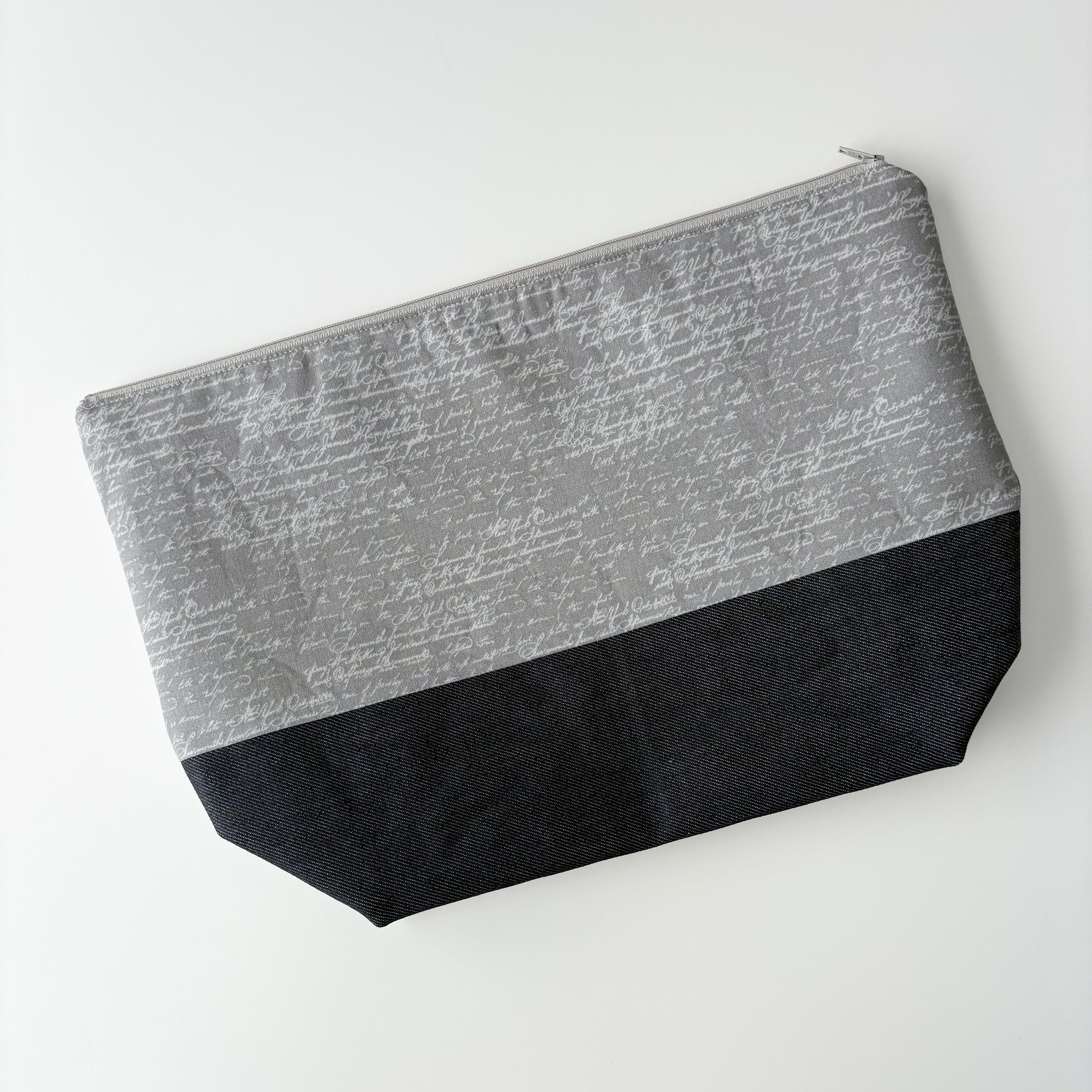 Denim - Sweater Zippered Project Bag - Grey Handwriting