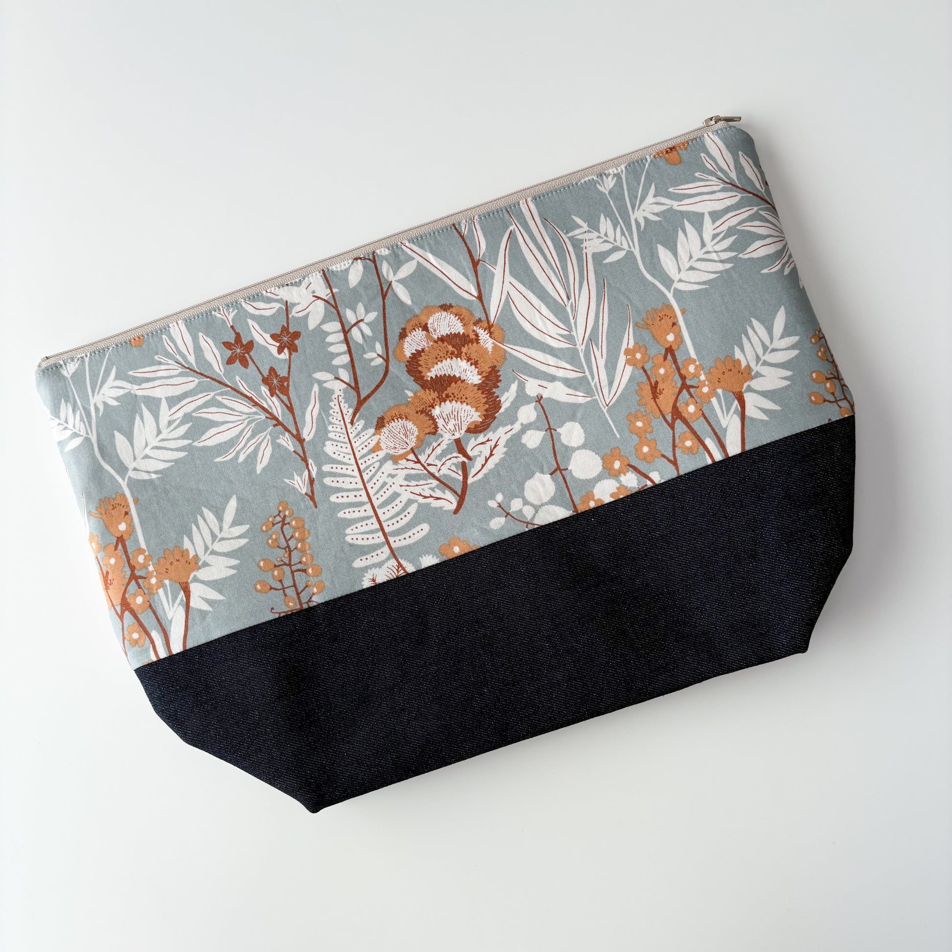 Denim - Sweater Zippered Project Bag - Meadow Flowers on Grey