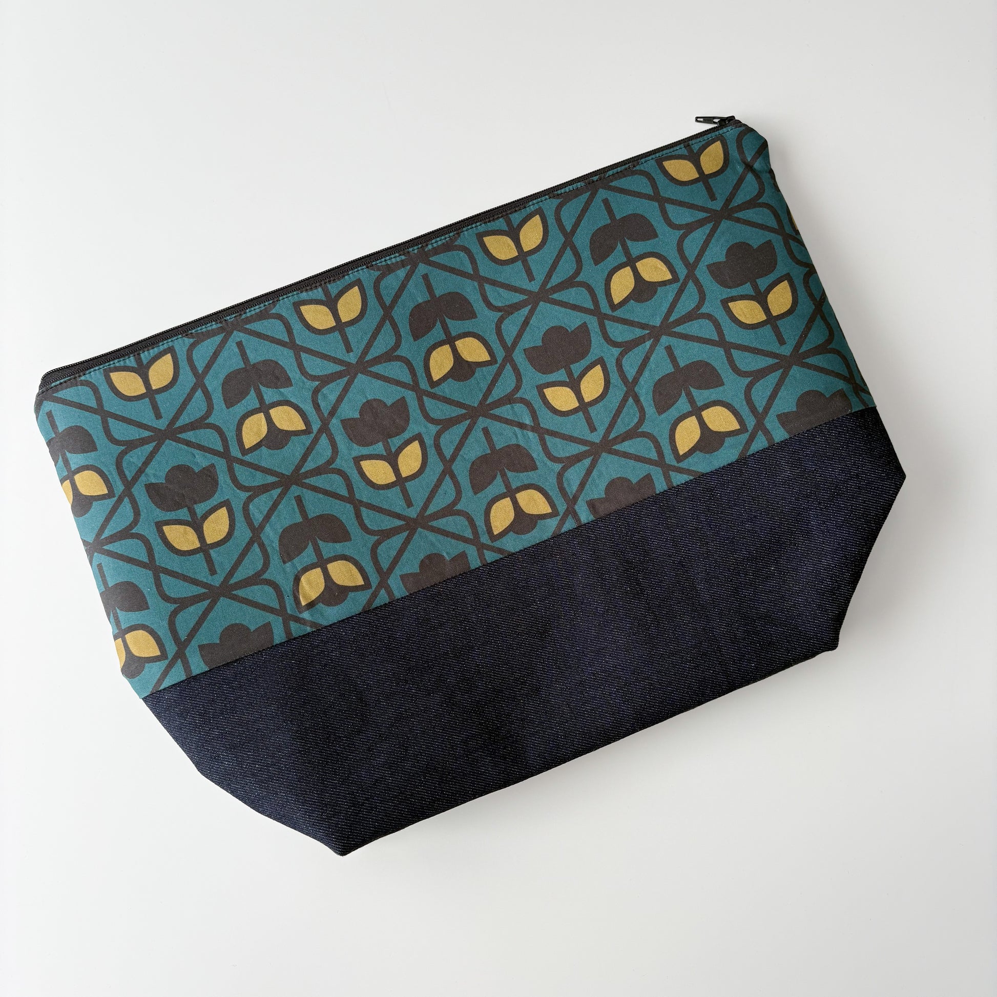 Denim - Sweater Zippered Project Bag - Petrol with Yellow Flowers