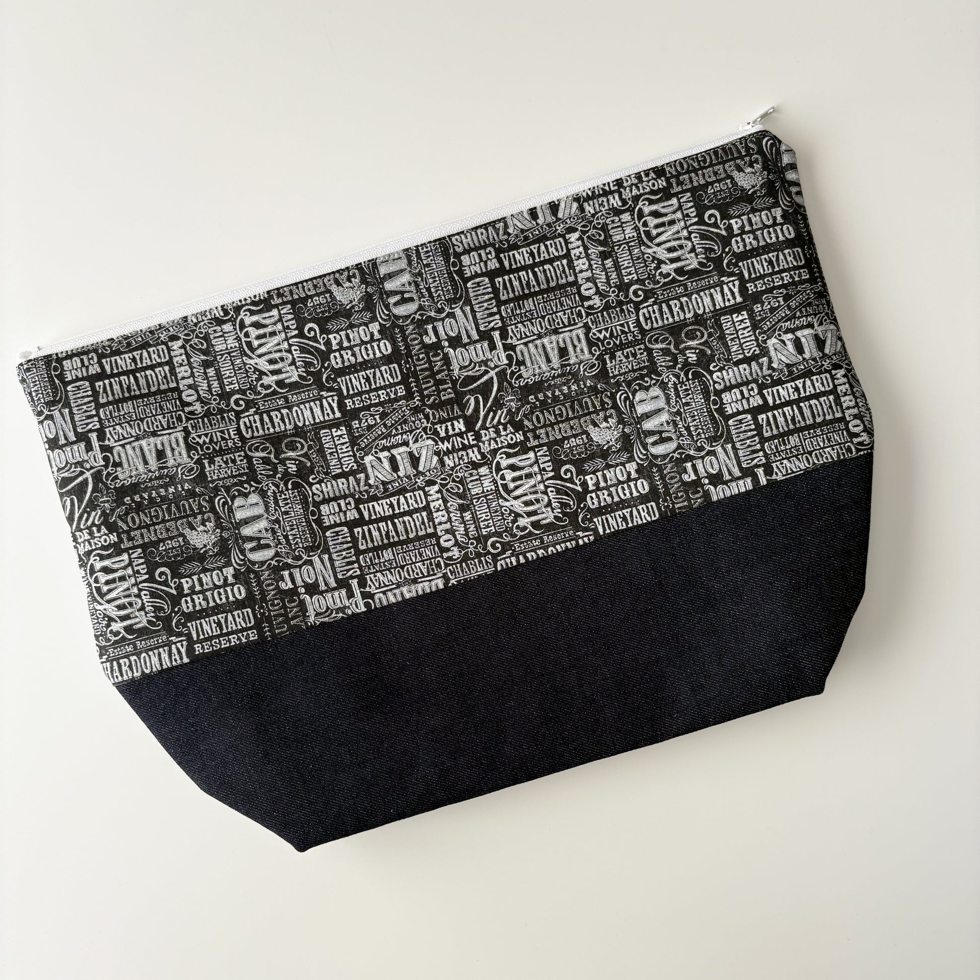 Extra Large zippered project bag perfect for sweater, blanket or shawl projects. This bag is made with a new denim outer fabric and 100% cotton lining fabric.