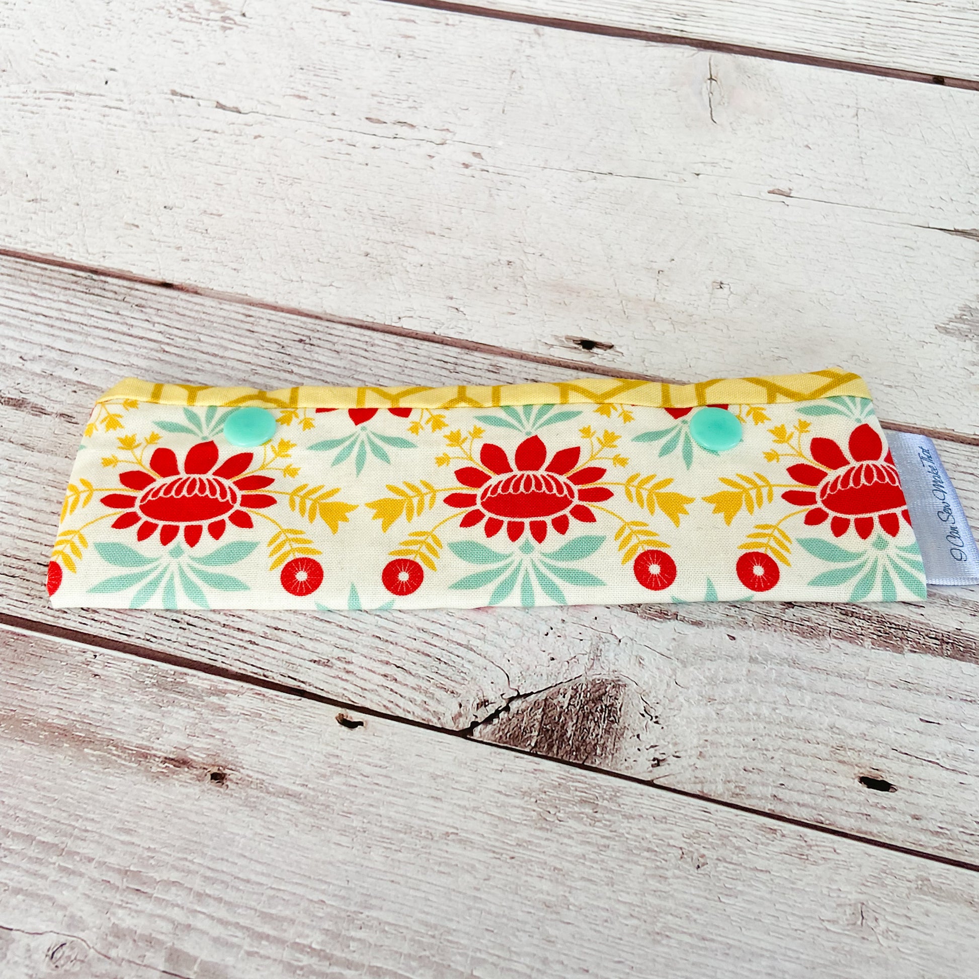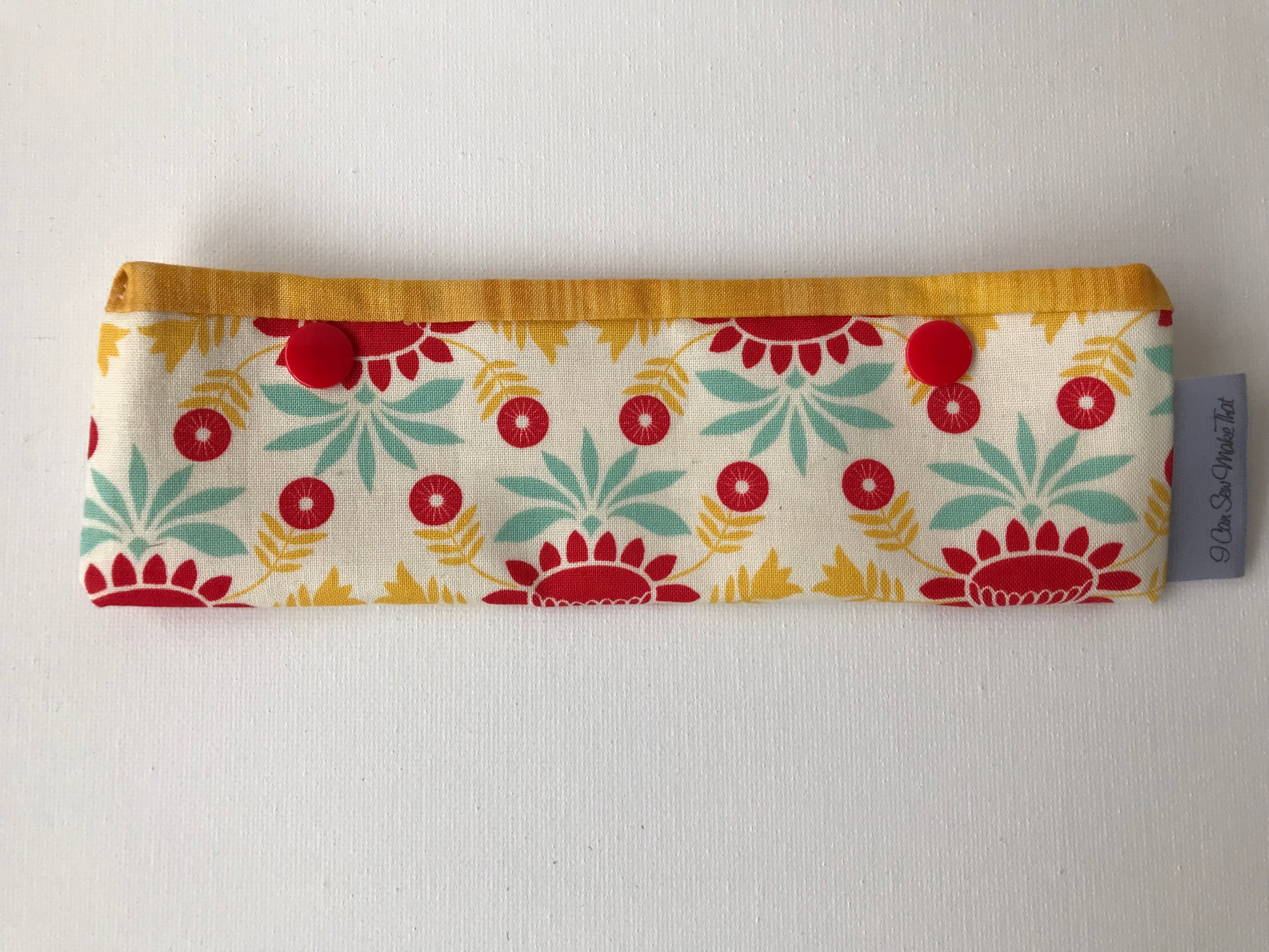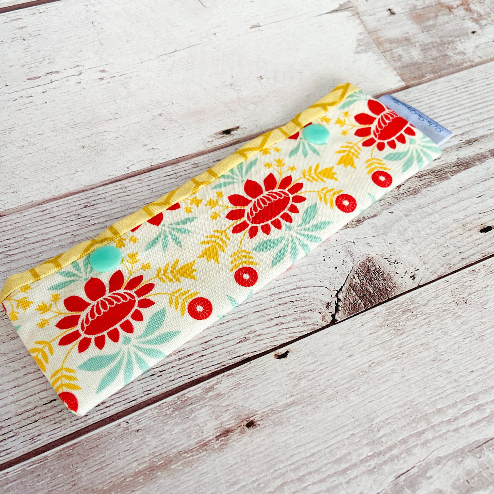DPN Holder ( Double Pointed Needle) Red with yellow blooms