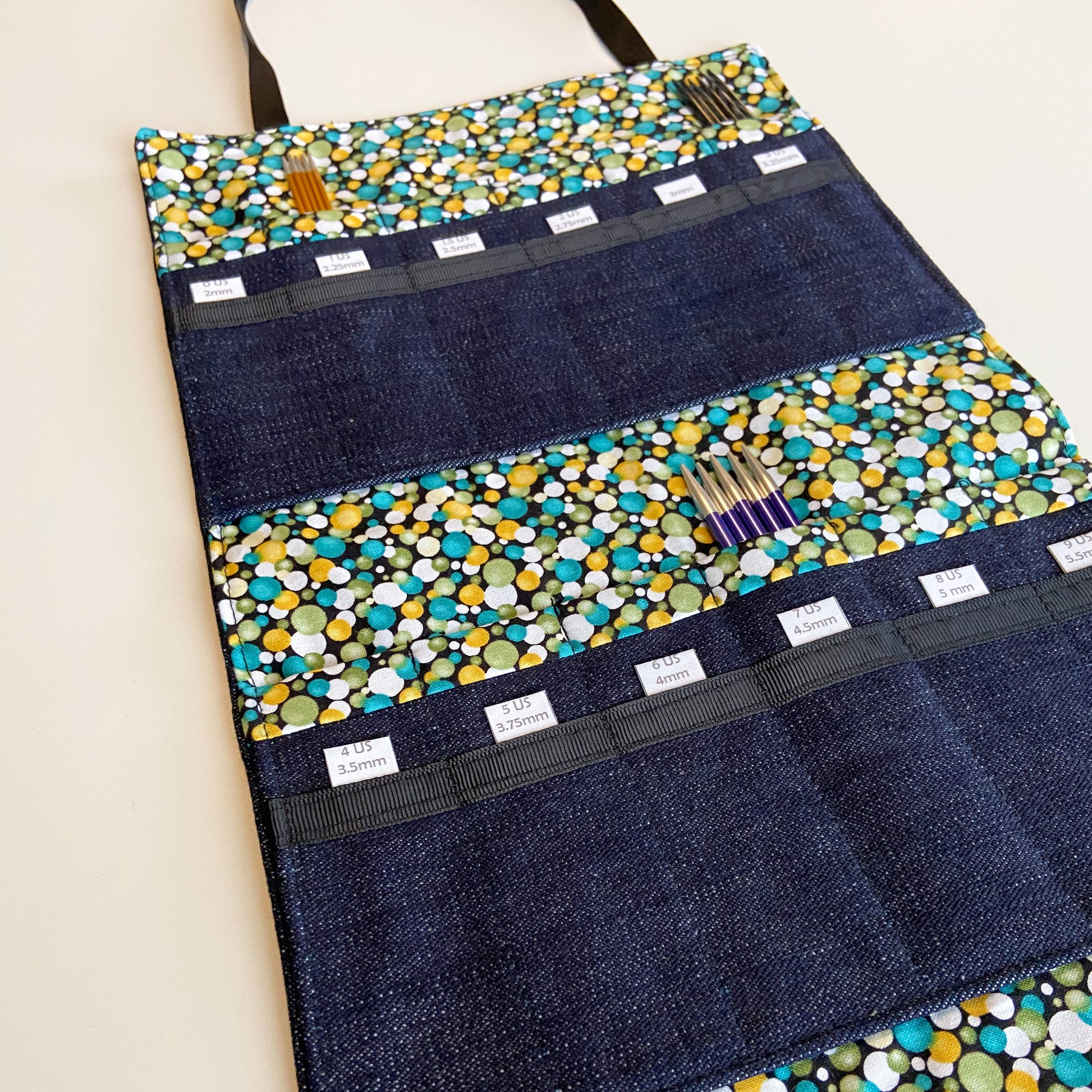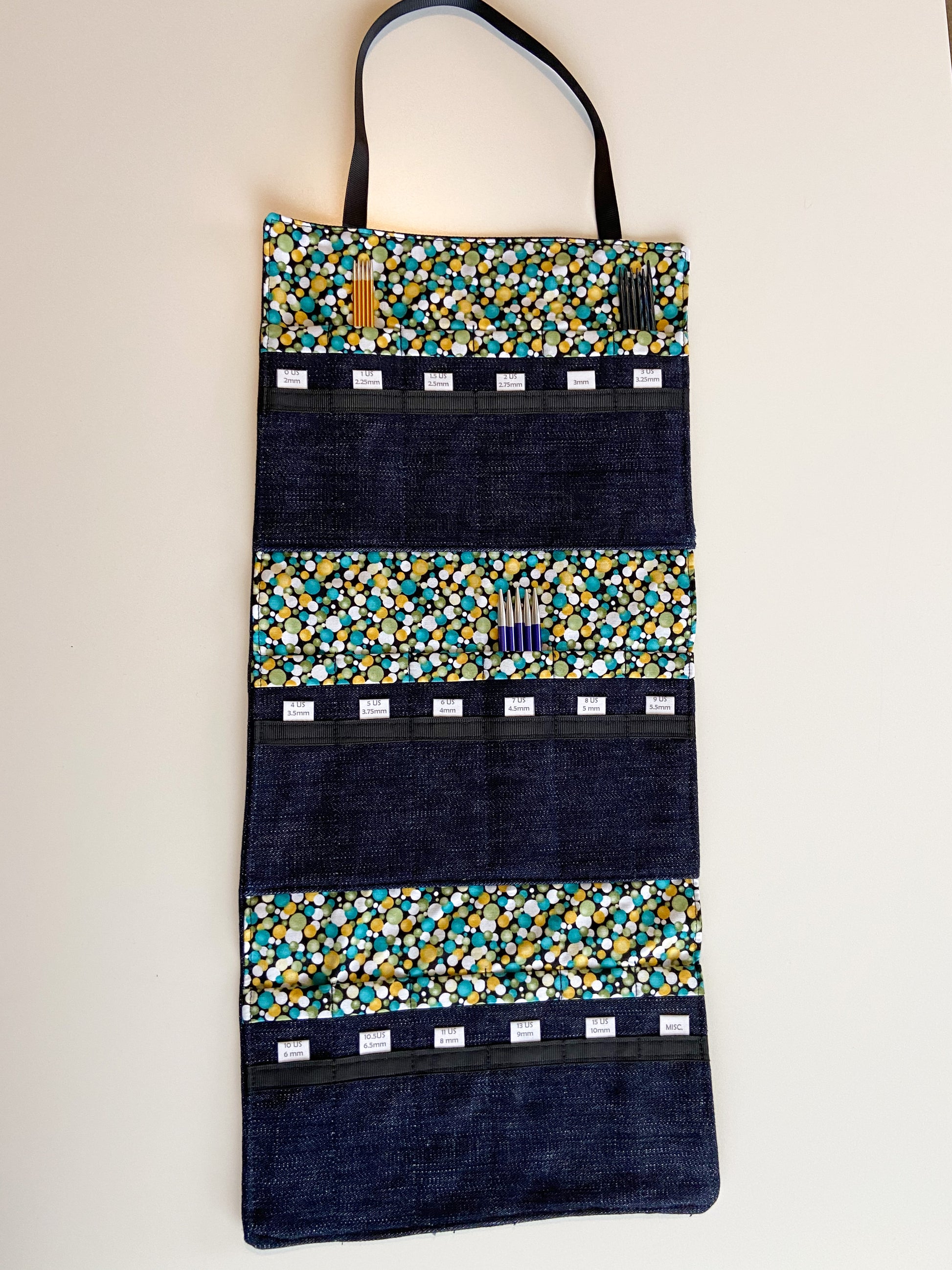 These DPN needle organizers are made with new denim and 100% cotton fabric. There is one layer of fusible interfacing to provide stability to channels. Each label is printed on fabric to be able to read the size with ease.