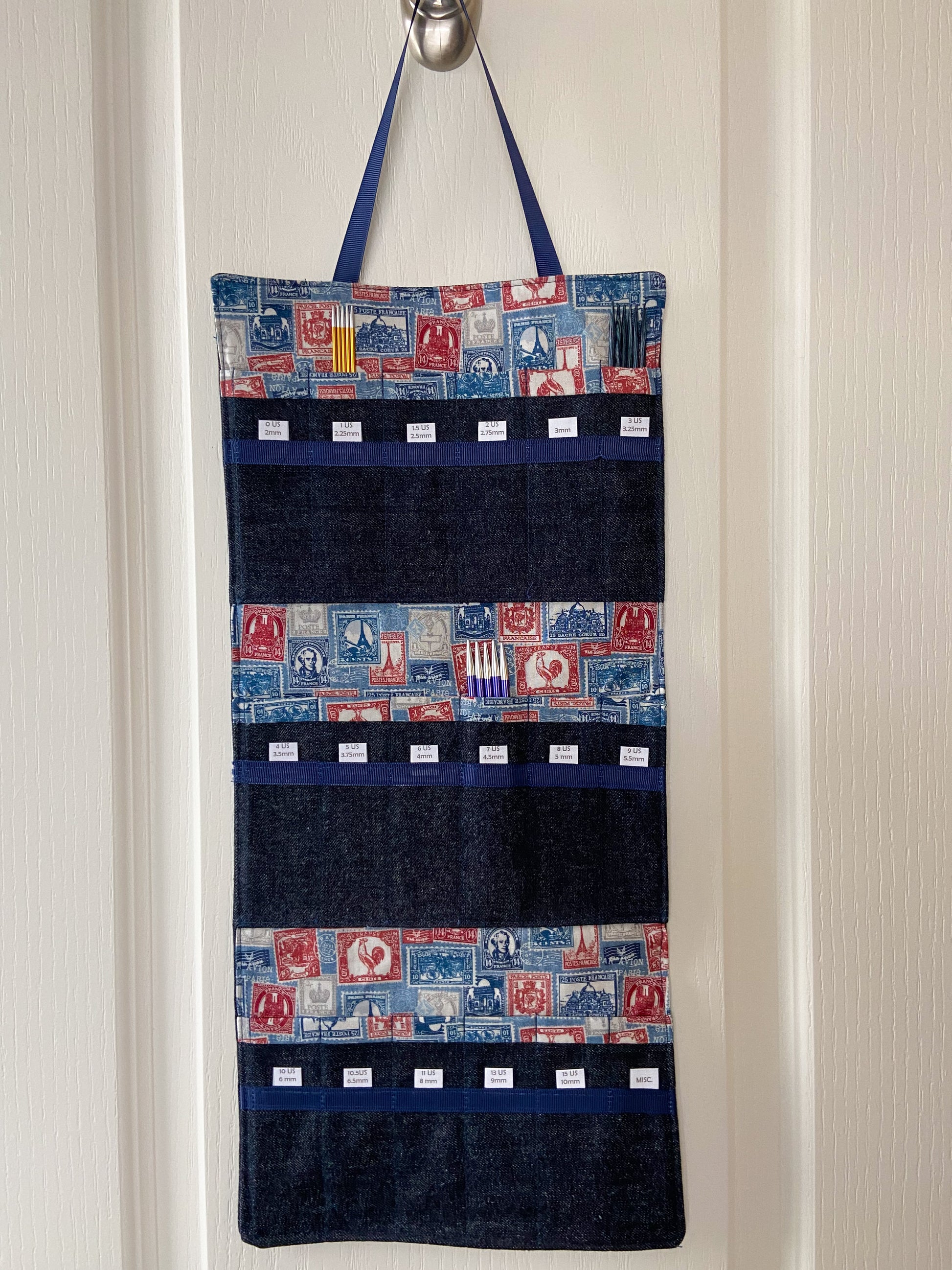 These DPN needle organizers are made with new denim and 100% cotton fabric. There is one layer of fusible interfacing to provide stability to channels. Each label is printed on fabric to be able to read the size with ease.