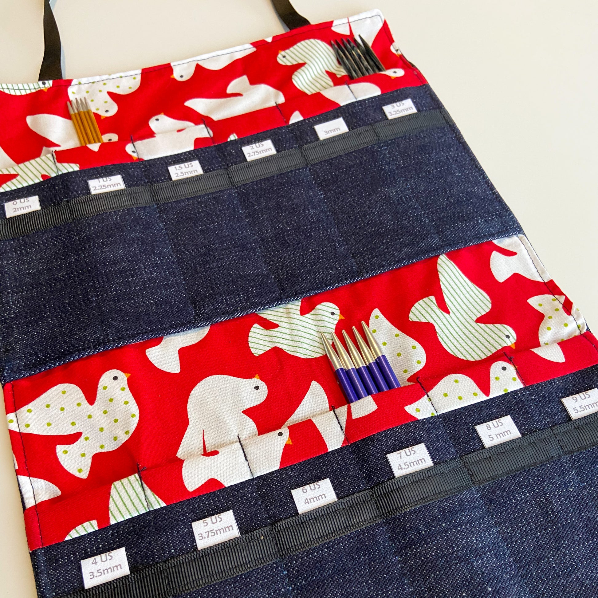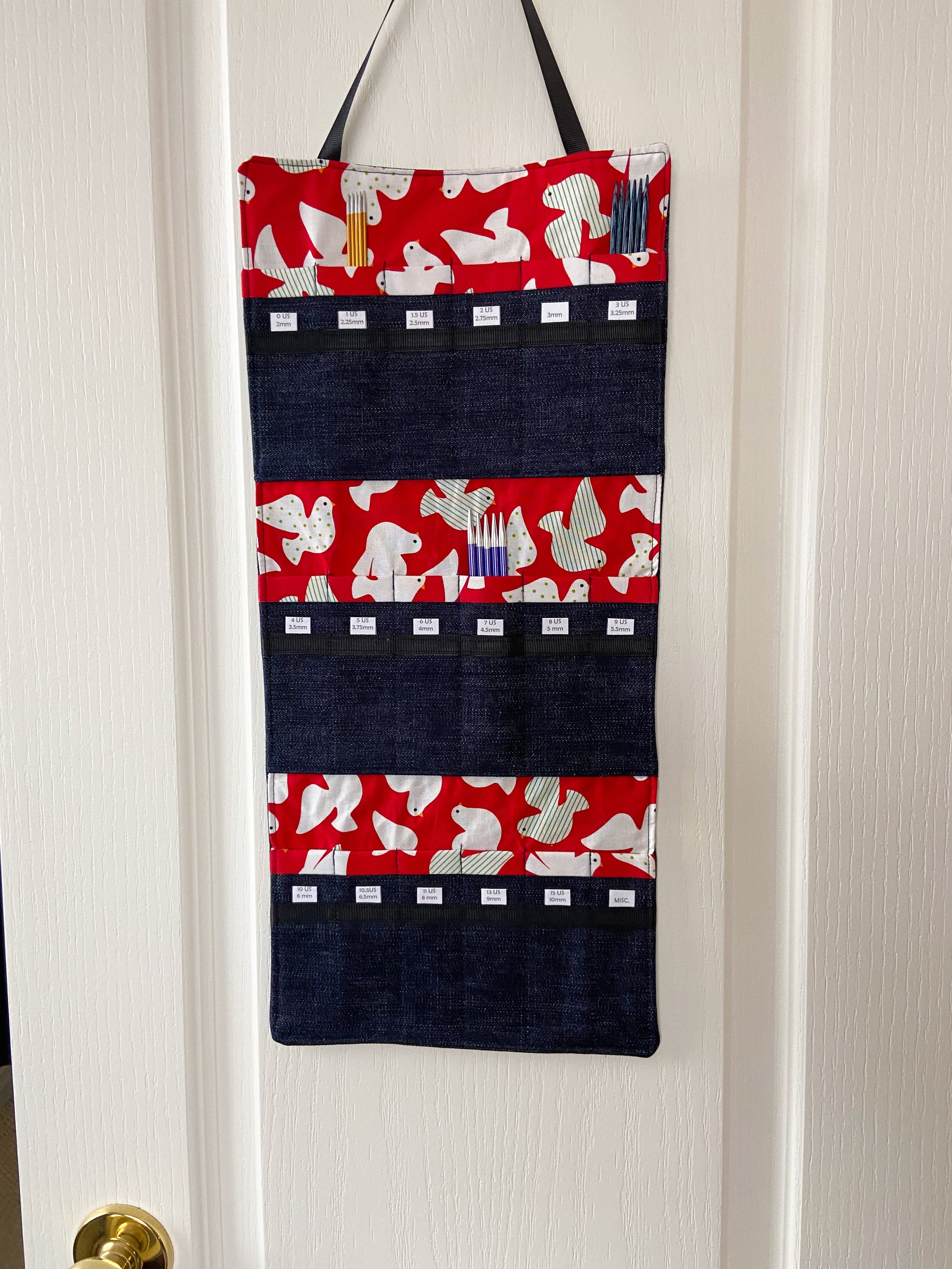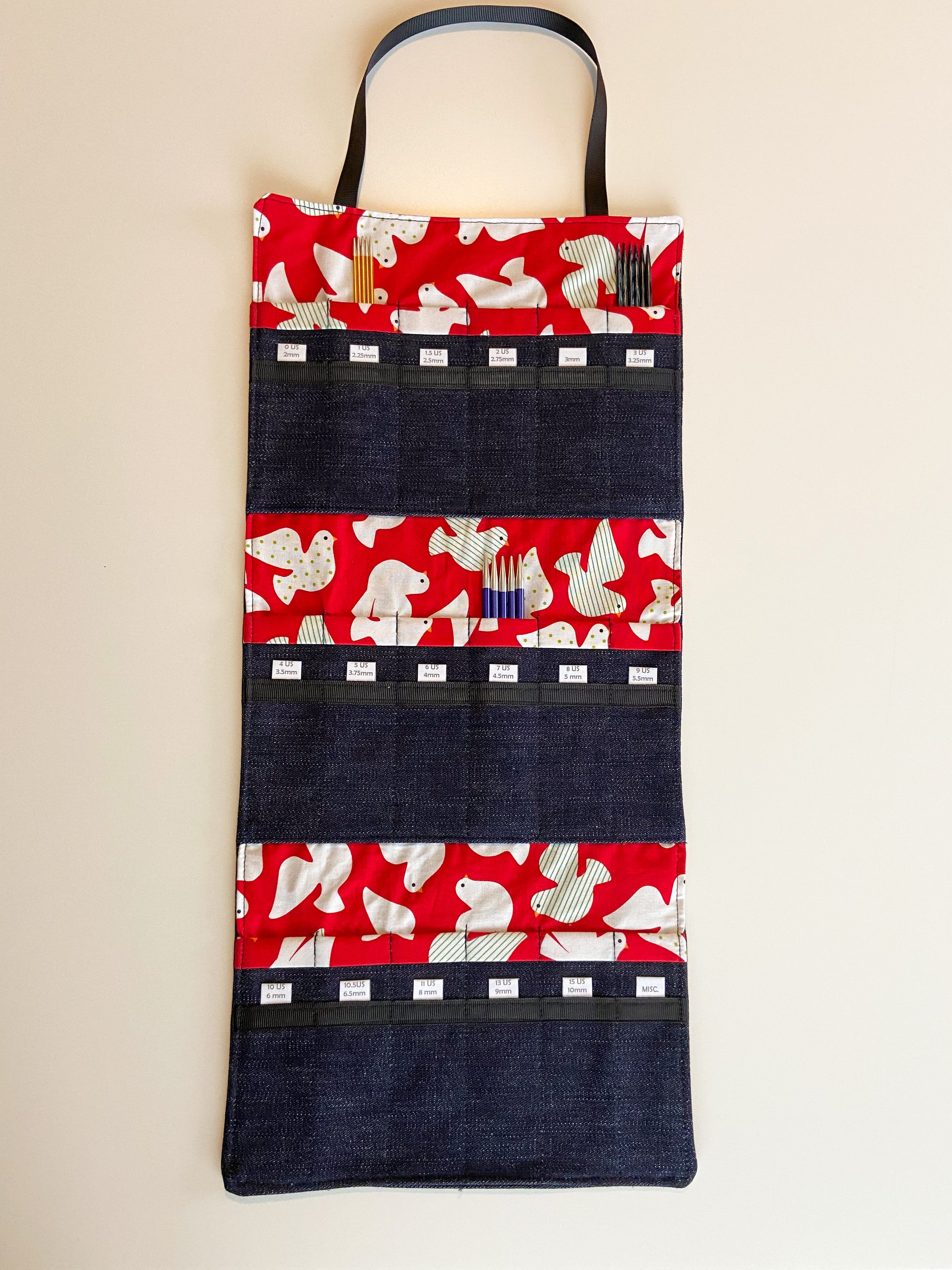 These DPN needle organizers are made with new denim and 100% cotton fabric. There is one layer of fusible interfacing to provide stability to channels. Each label is printed on fabric to be able to read the size with ease.