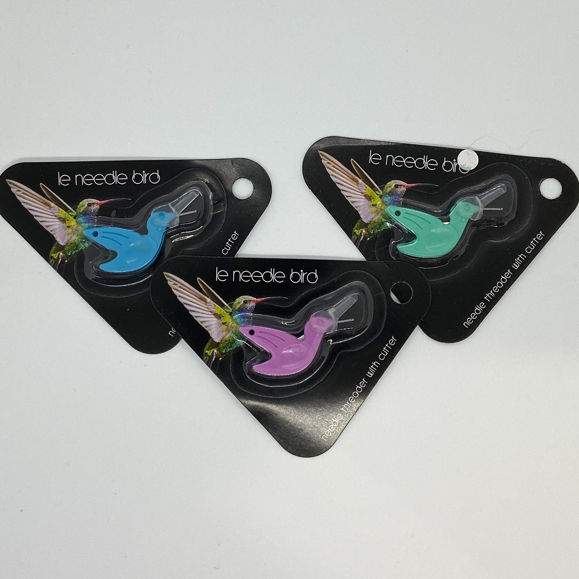 - Hummingbird shaped needle threader with cutter