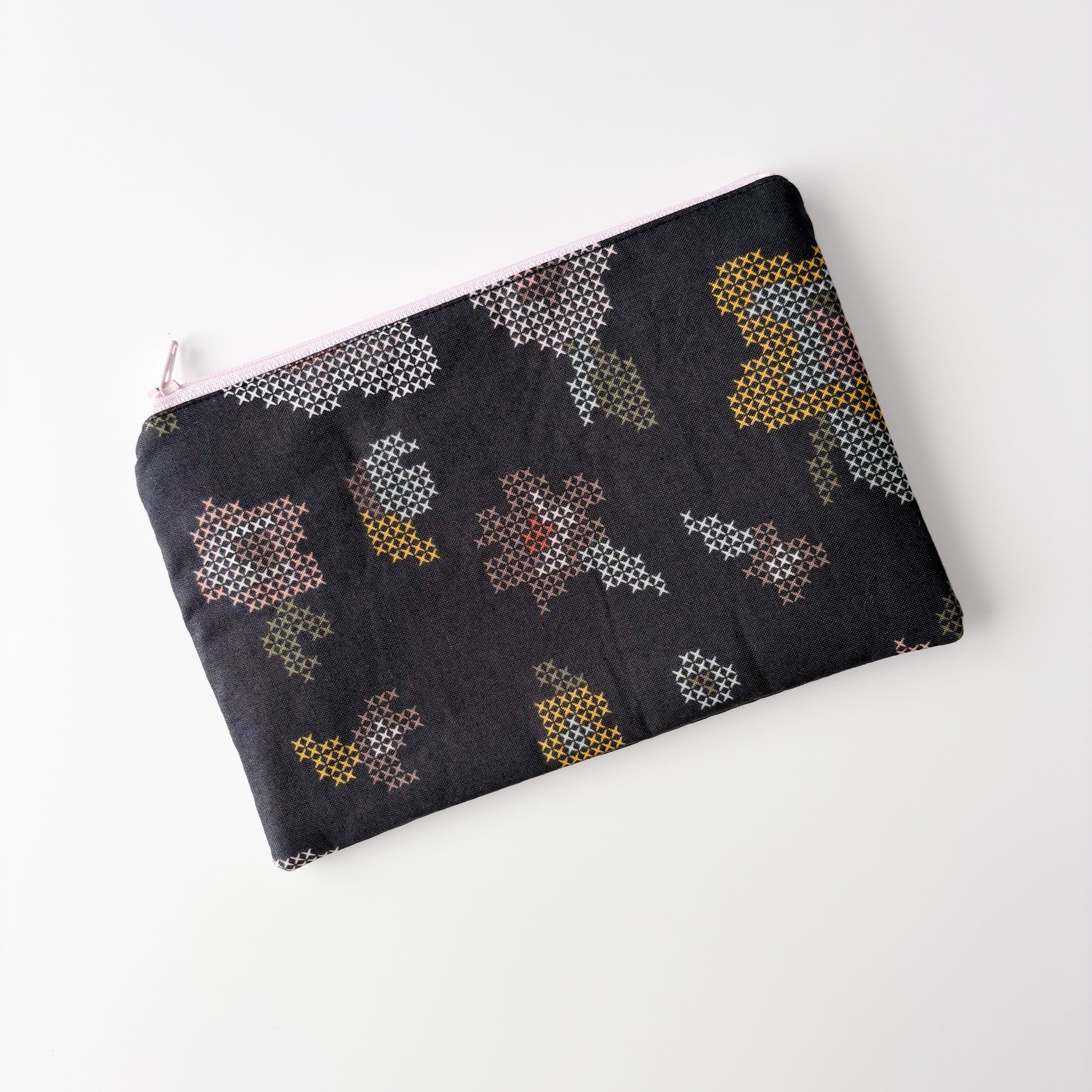 Notion Pouch - Cross Stitch Flowers on Black