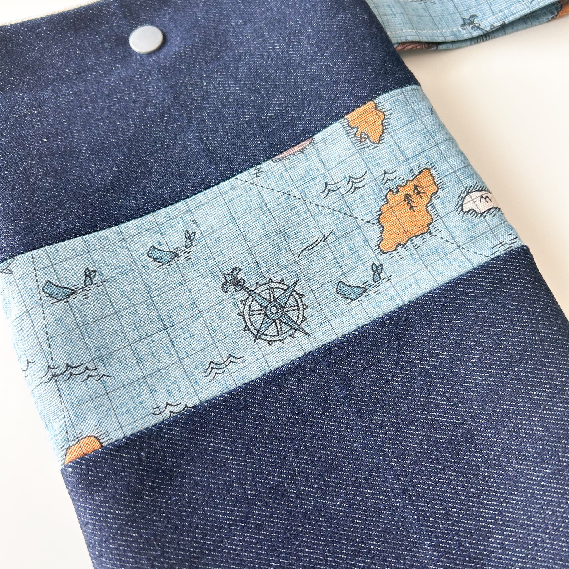 These scroll rod/swift holders are made with new denim and 100% cotton fabric. There is one layer of fusible interfacing to provide protection. Each come with a handle to hang on a hook or knob to keep it safe. A coordinating snap is added to allow you to travel with your project contained.