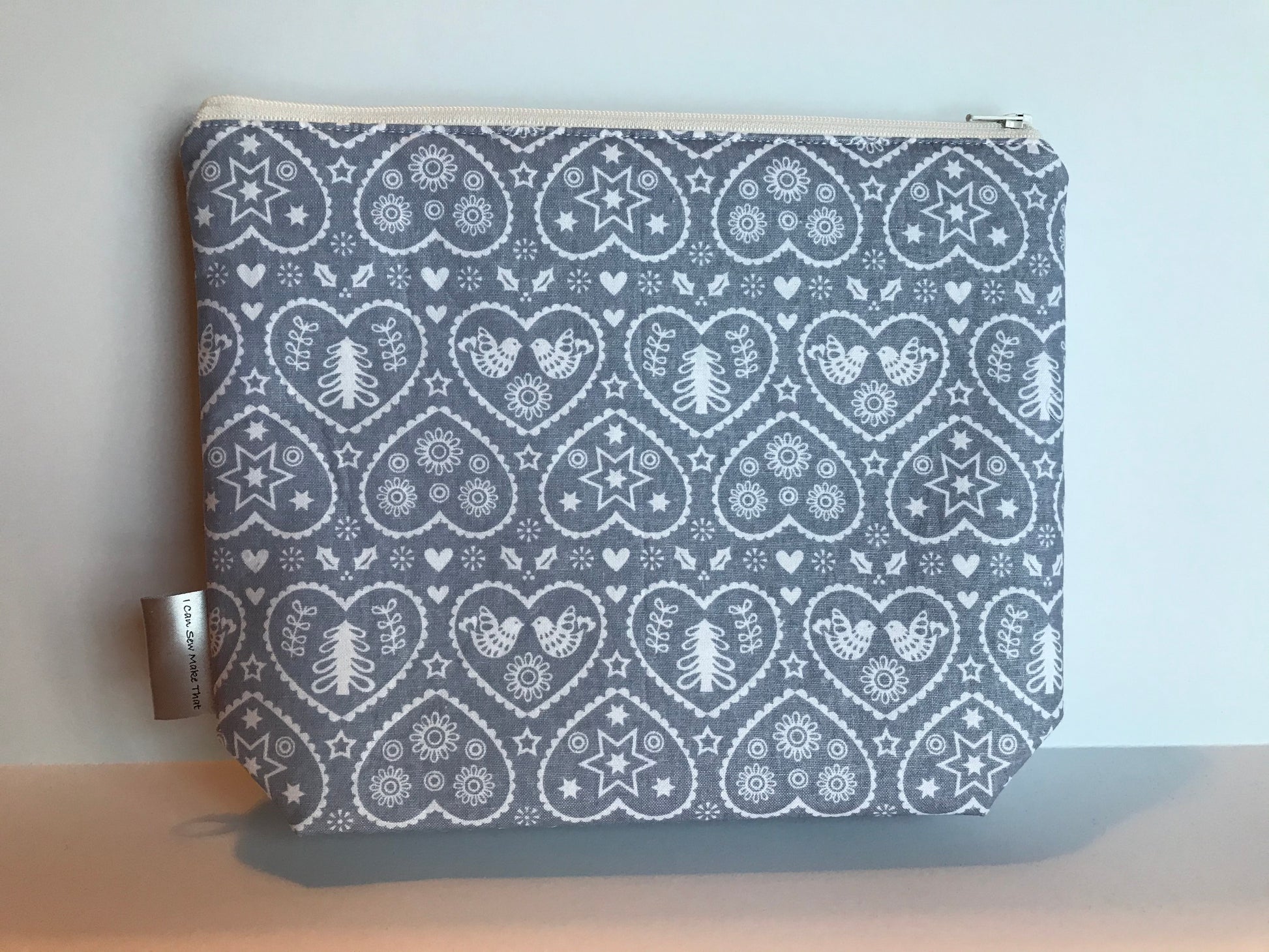 A small zippered sock project bag or large notion tote to keep all the little things together that you need on-the-go. They can be used for any & all items such as knitting notions, embroidery supplies or make-up in your suitcase. It could also fit a small knitting, crochet or embroidery project to keep it protected.