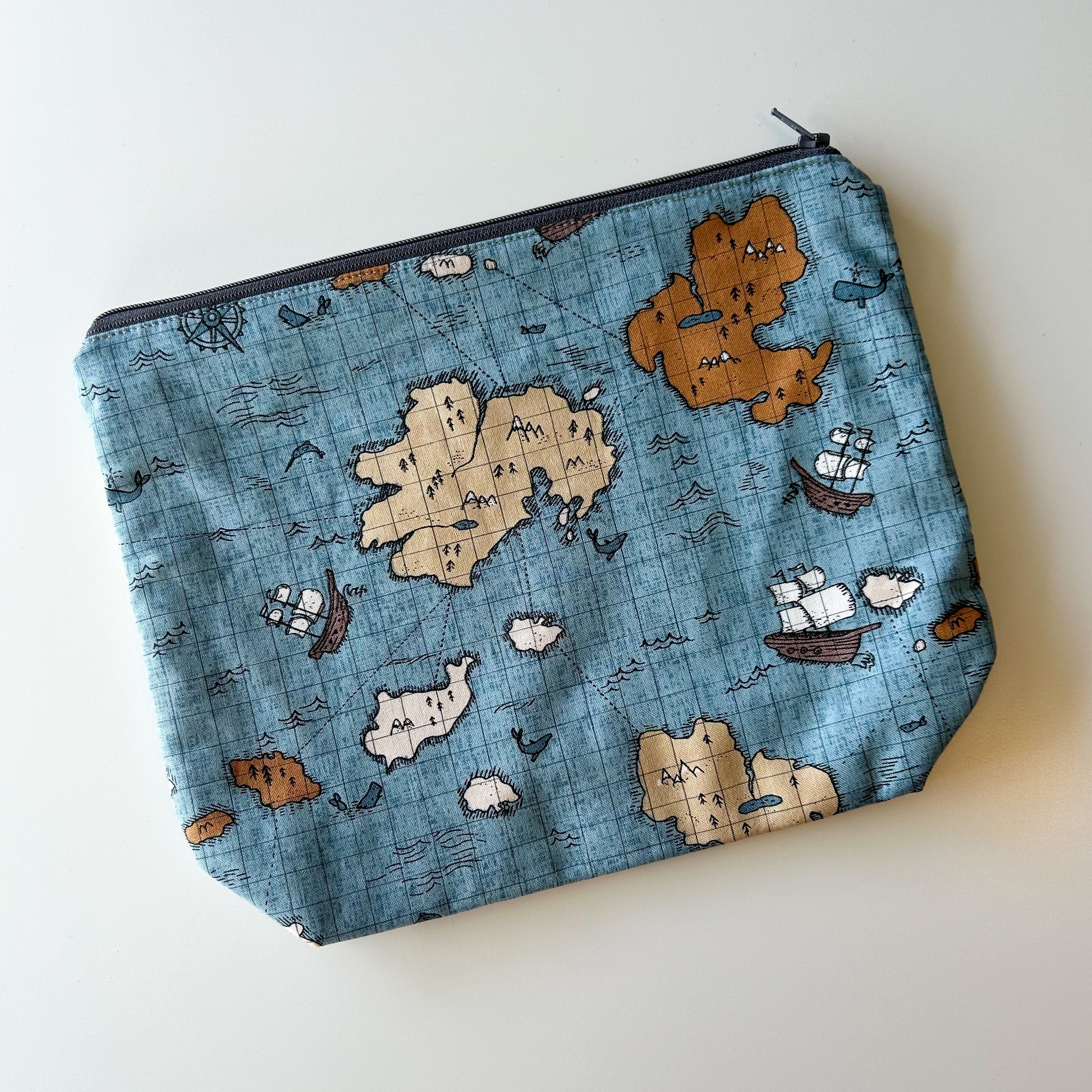 A small zippered sock project bag or large notion tote to keep all the little things together that you need on-the-go. They can be used for any & all items such as knitting notions, embroidery supplies or make-up in your suitcase. It could also fit a small knitting, crochet or embroidery project to keep it protected.
