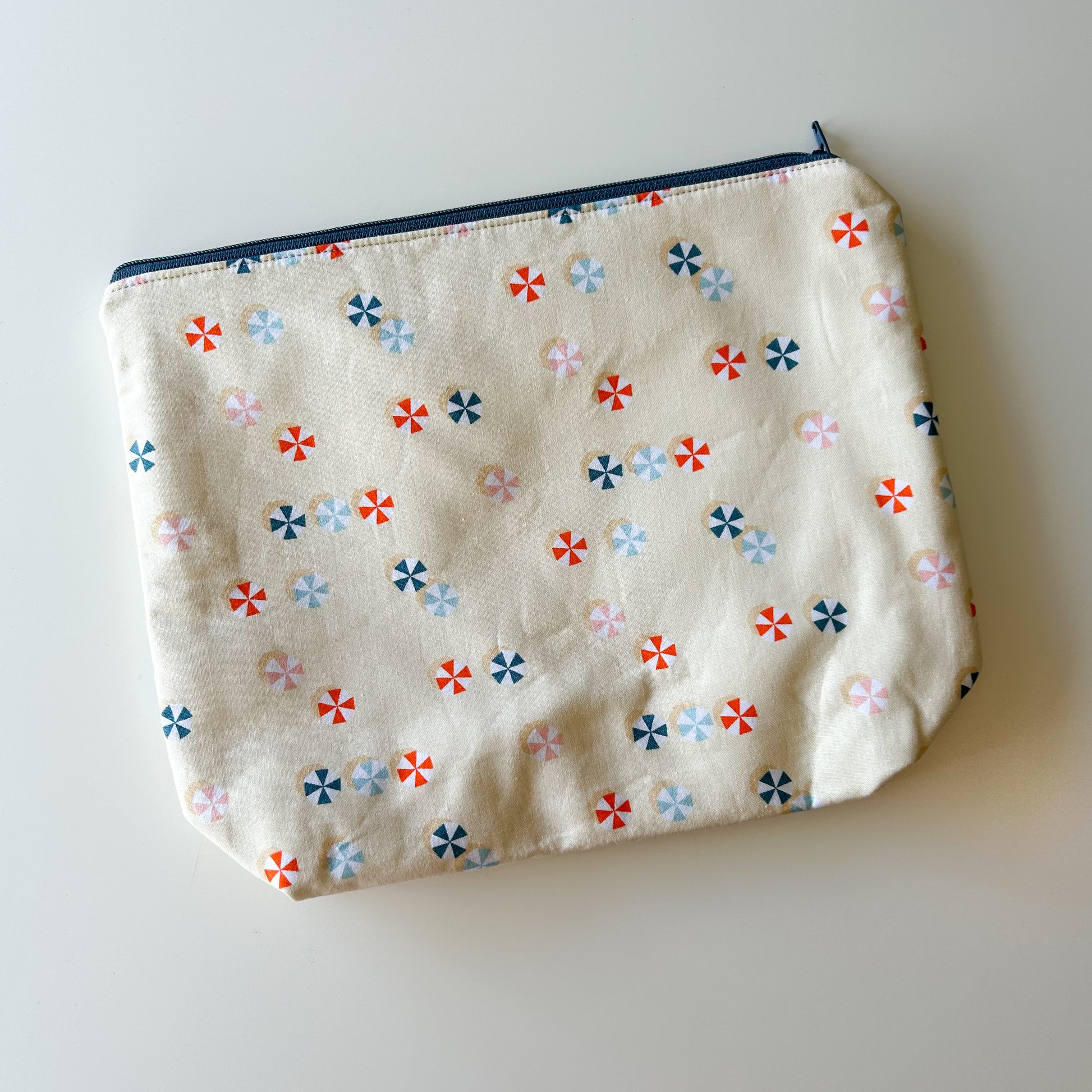 Roll down the top portion of bag and use to work your project from. Made with new 100% cotton, nylon zipper and fusible fleece for added padding.