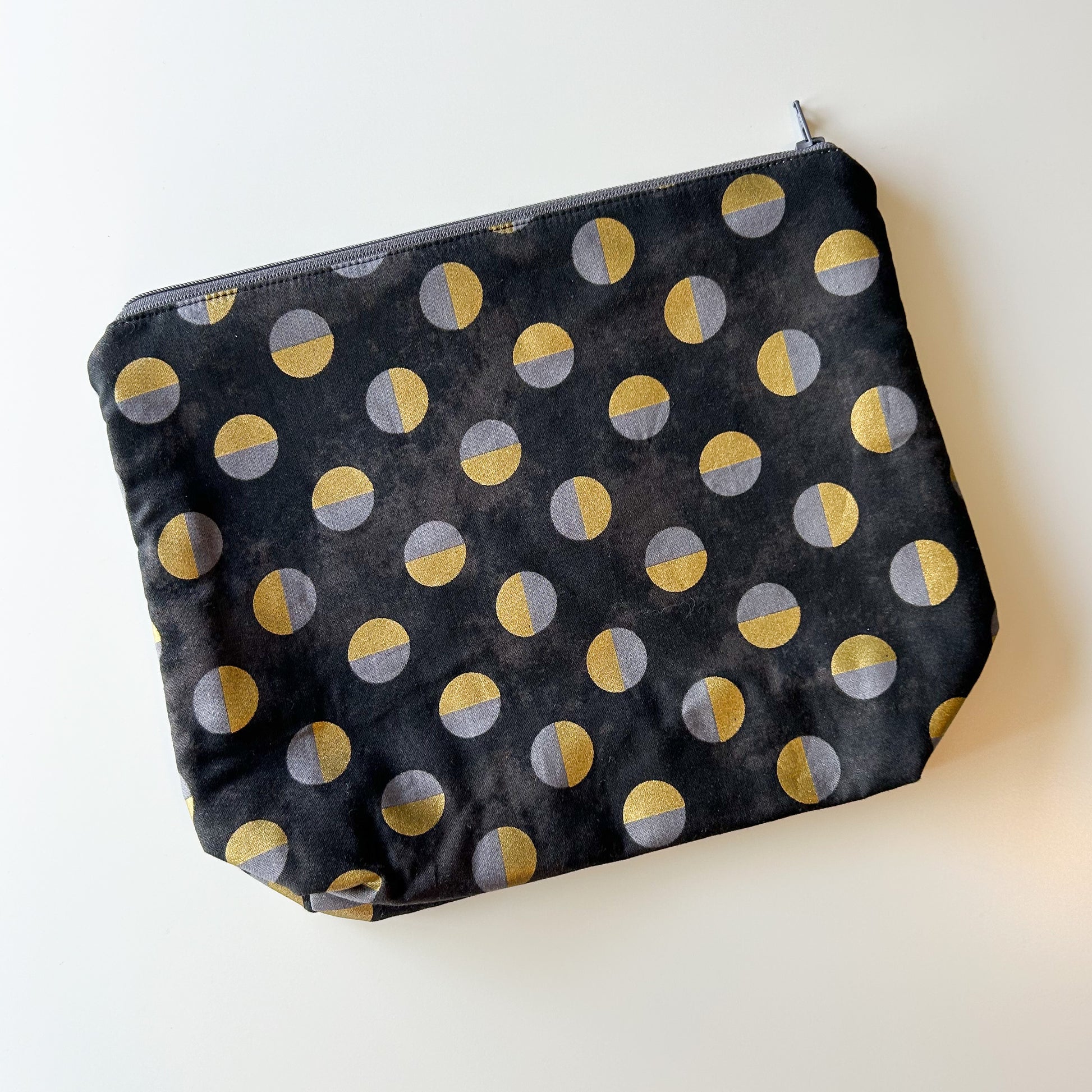 Sock Project Bag - Black with Gold Circles