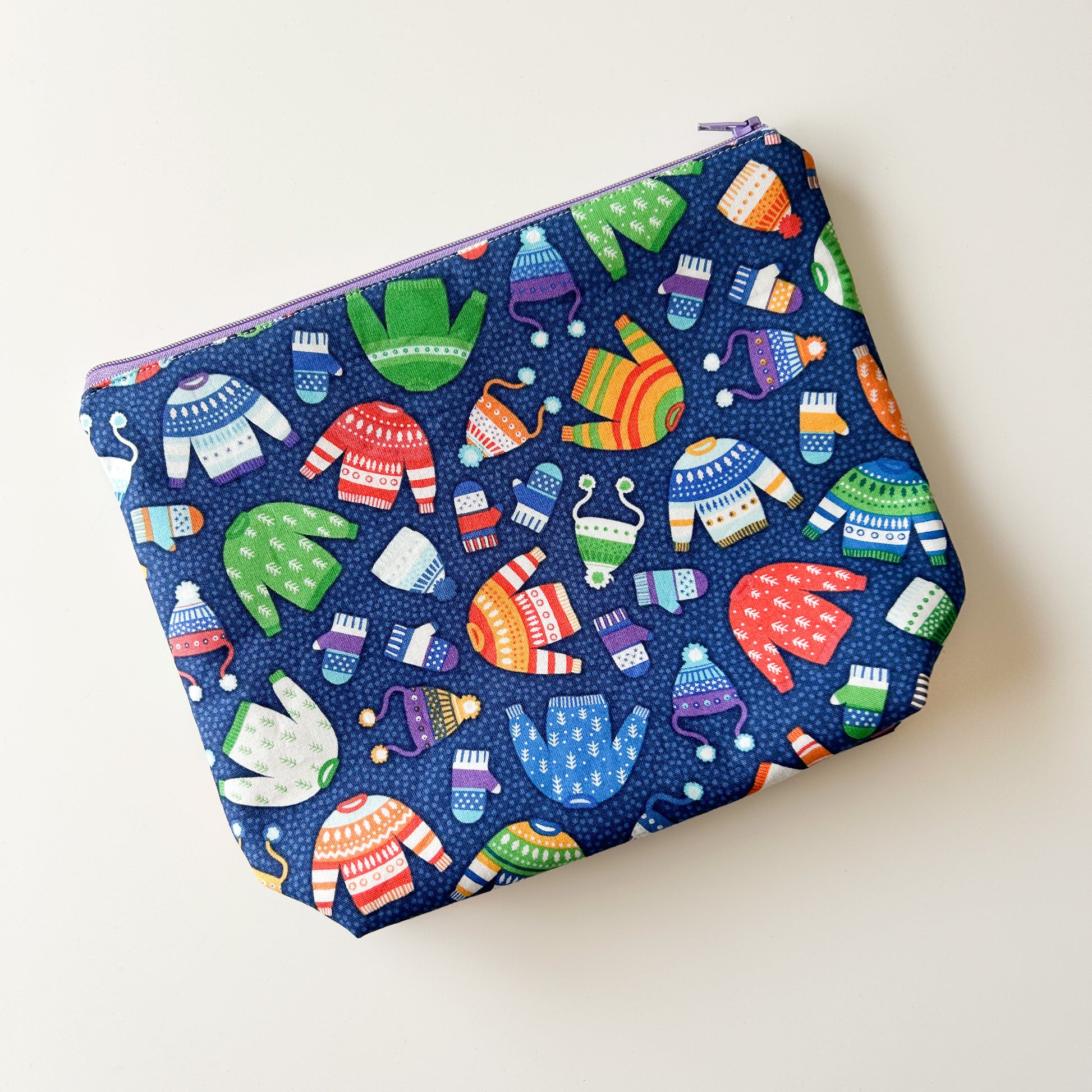 A small zippered sock project bag or large notion tote to keep all the little things together that you need on-the-go. They can be used for any & all items such as knitting notions, embroidery supplies or make-up in your suitcase. It could also fit a small knitting, crochet or embroidery project to keep it protected.