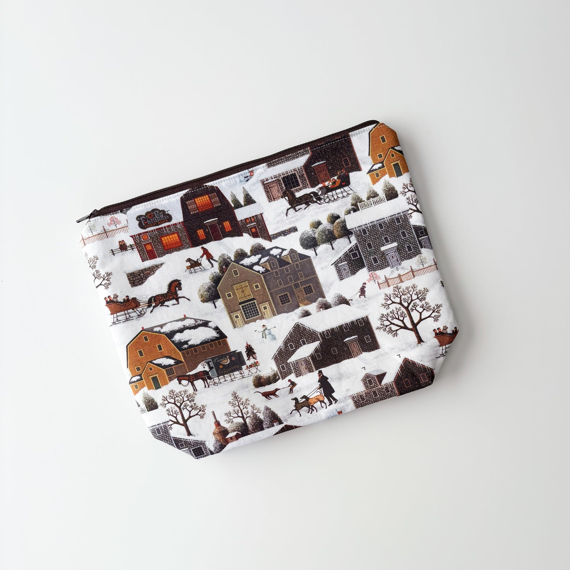 Roll down the top portion of bag and use to work your project from. Made with new 100% cotton, nylon zipper and fusible fleece for added padding.