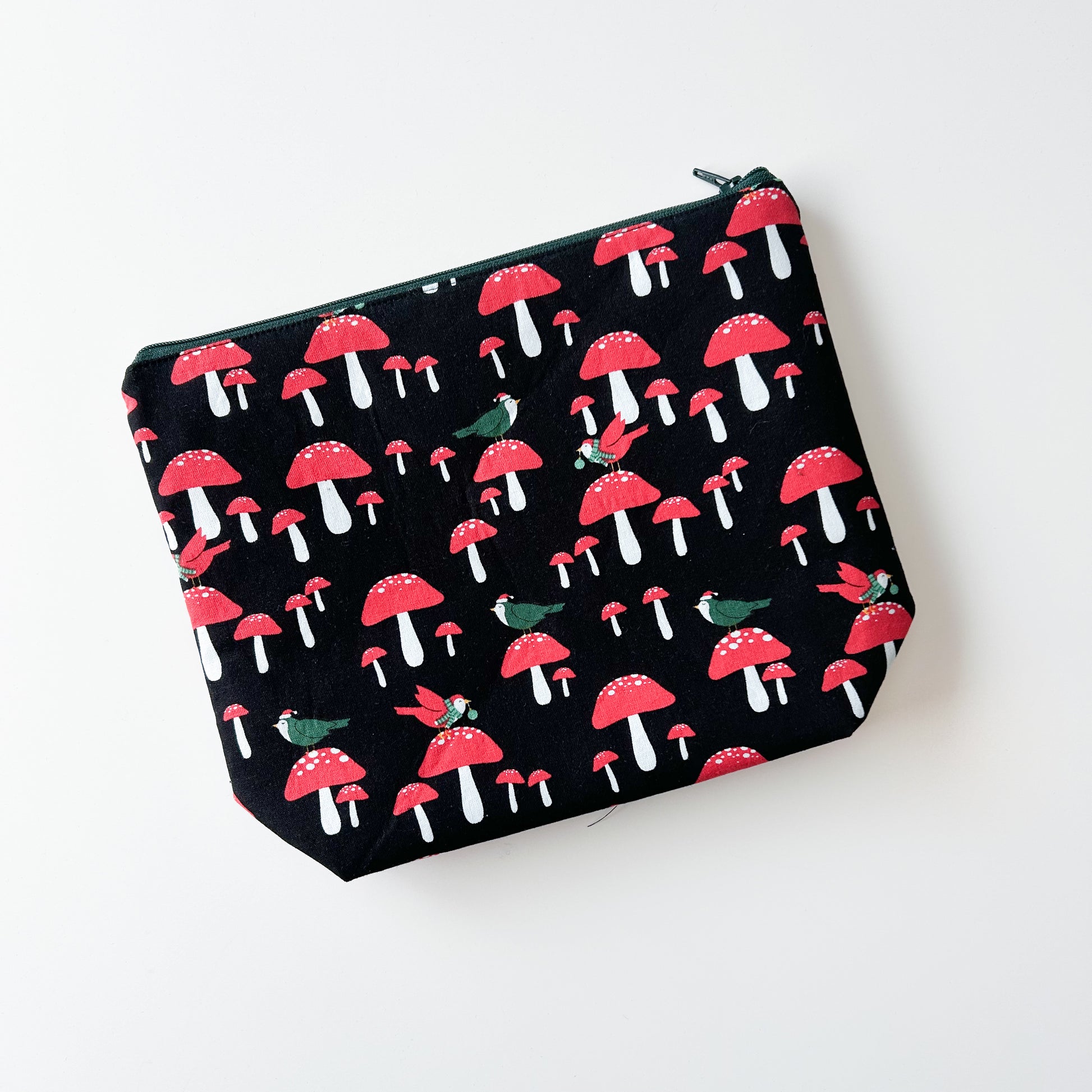 Sock Project Bag - Red Mushrooms and Birds at Night
