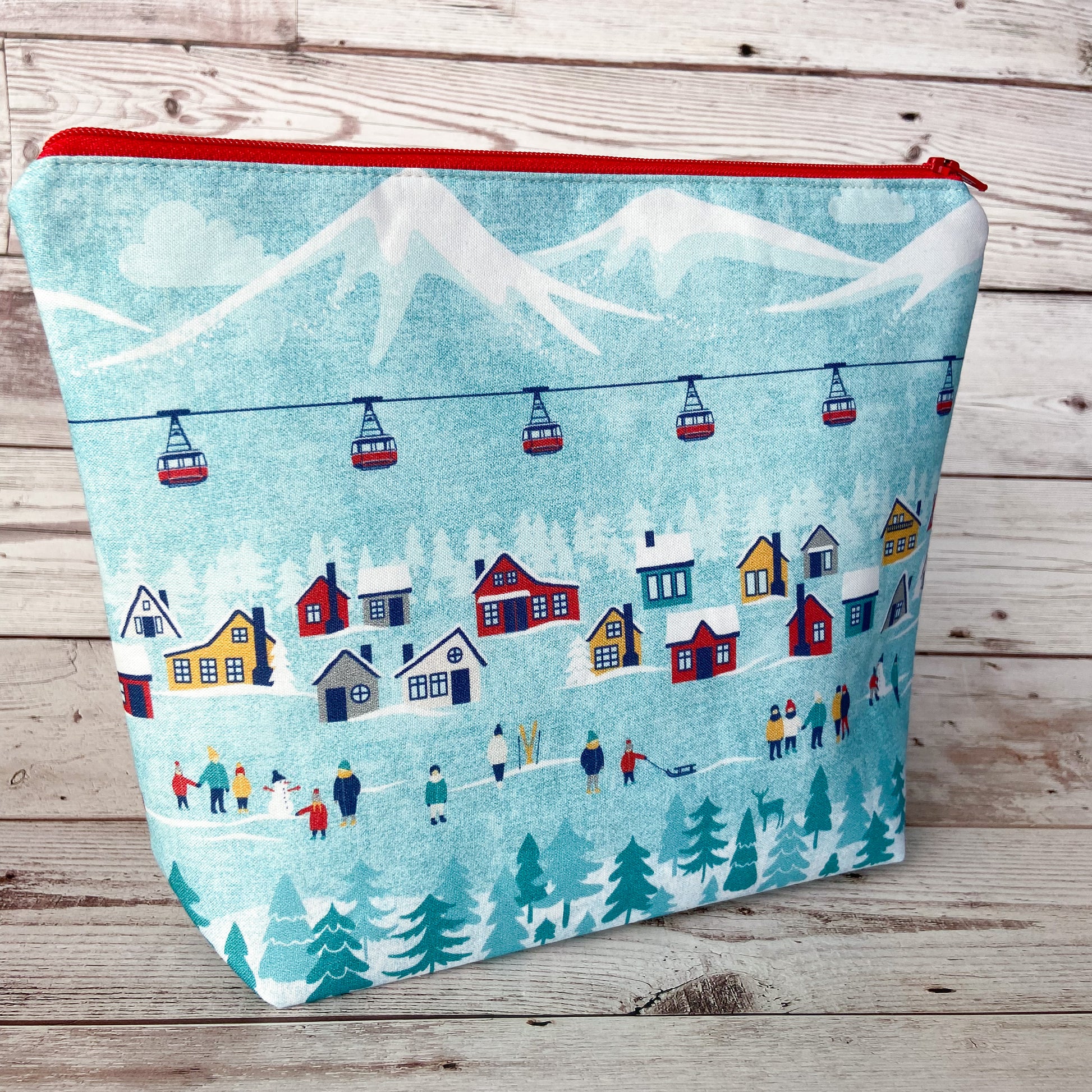 A small zippered sock project bag or large notion tote to keep all the little things together that you need on-the-go. They can be used for any & all items such as knitting notions, embroidery supplies or make-up in your suitcase. It could also fit a small knitting, crochet or embroidery project to keep it protected.