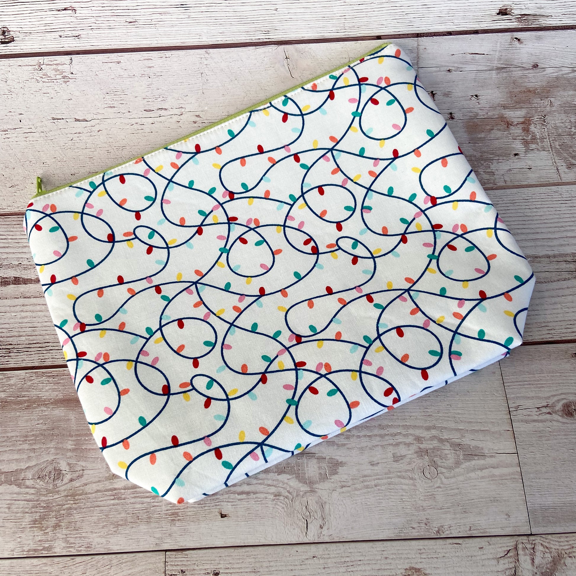 A small zippered sock project bag or large notion tote to keep all the little things together that you need on-the-go. They can be used for any & all items such as knitting notions, embroidery supplies or make-up in your suitcase. It could also fit a small knitting, crochet or embroidery project to keep it protected.